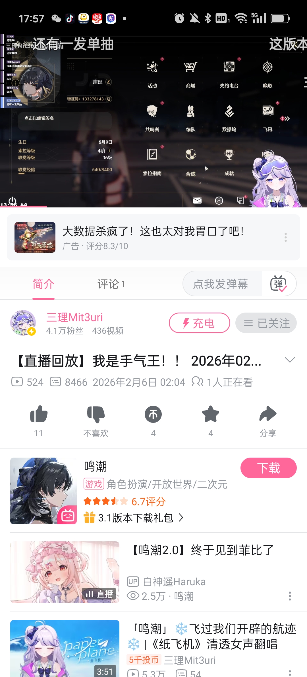 米友粥友环友大大方方进,推荐几个永远不会播鸣潮的v