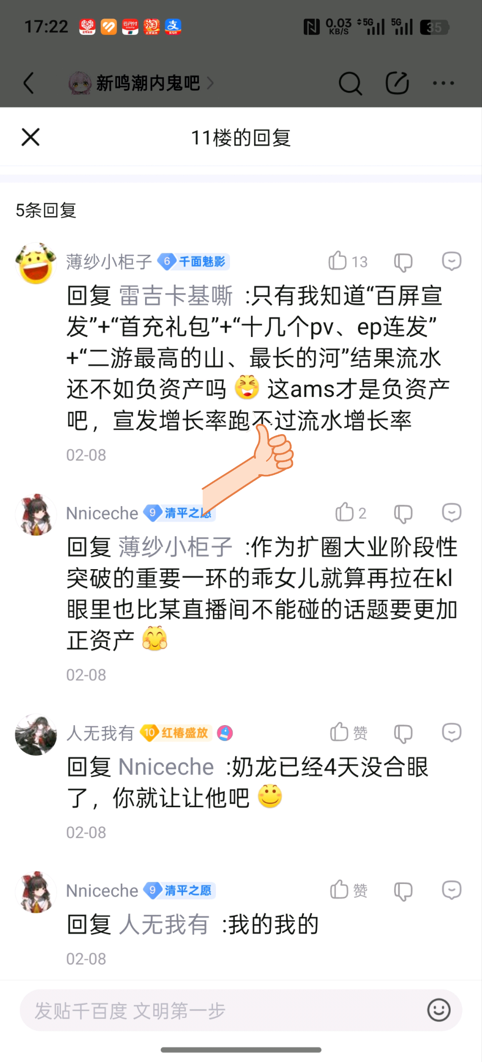 楼主:混厕长最后回复:玩的嚎欣蕾啊 🍭人真多