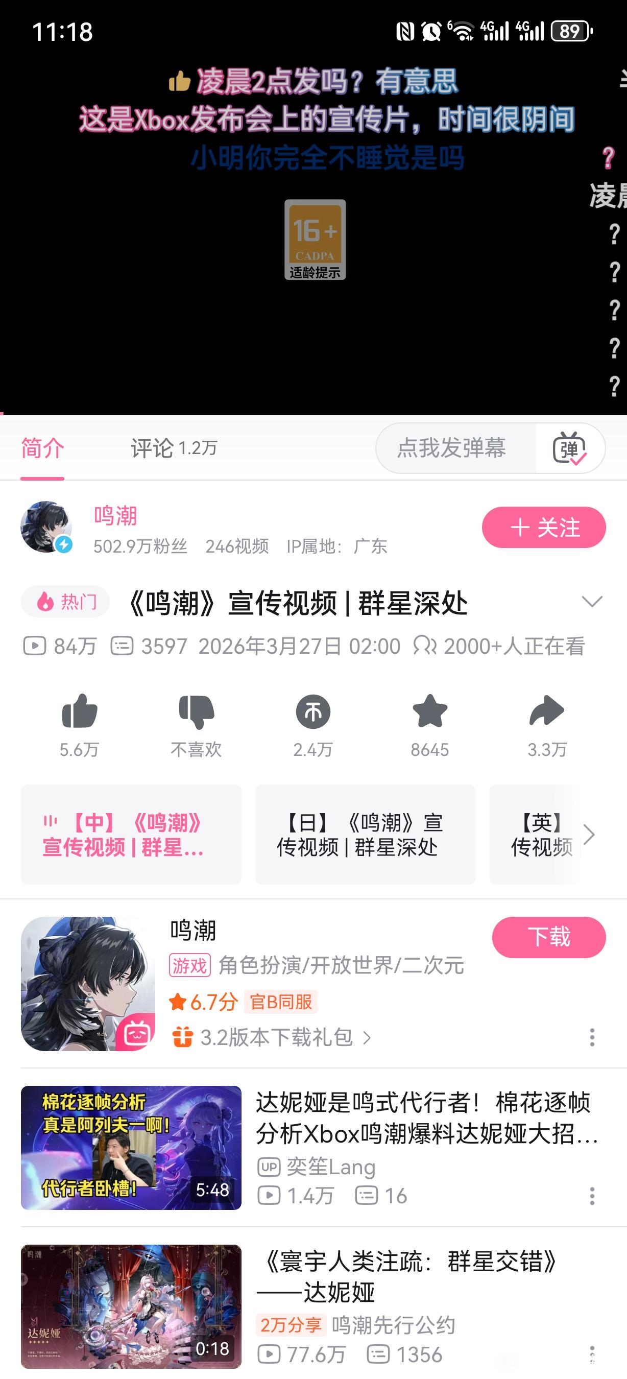 鸣潮两点发主推视频,知道是罕见角色,所以不敢张扬
