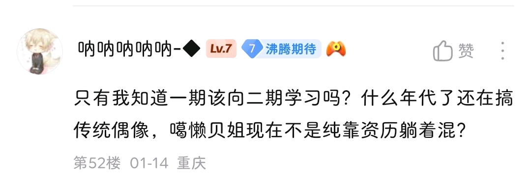 两条直球评论,直接发评论区的应该给举办掉了,发宜姐底下的还在