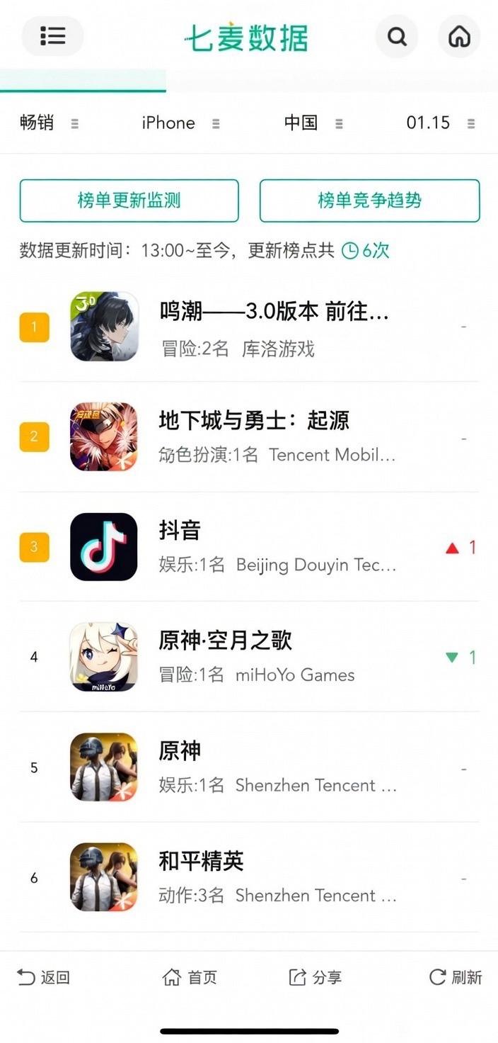 喜报!莫宁目前第六了,原神危险了!