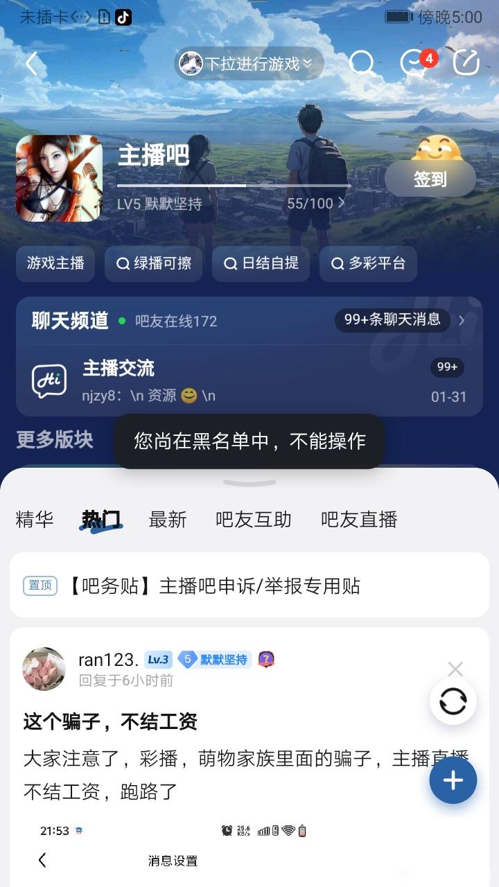 【02-06 | 吧主违规证据补充】举报主播吧吧主周深深恶意拉我进黑名单