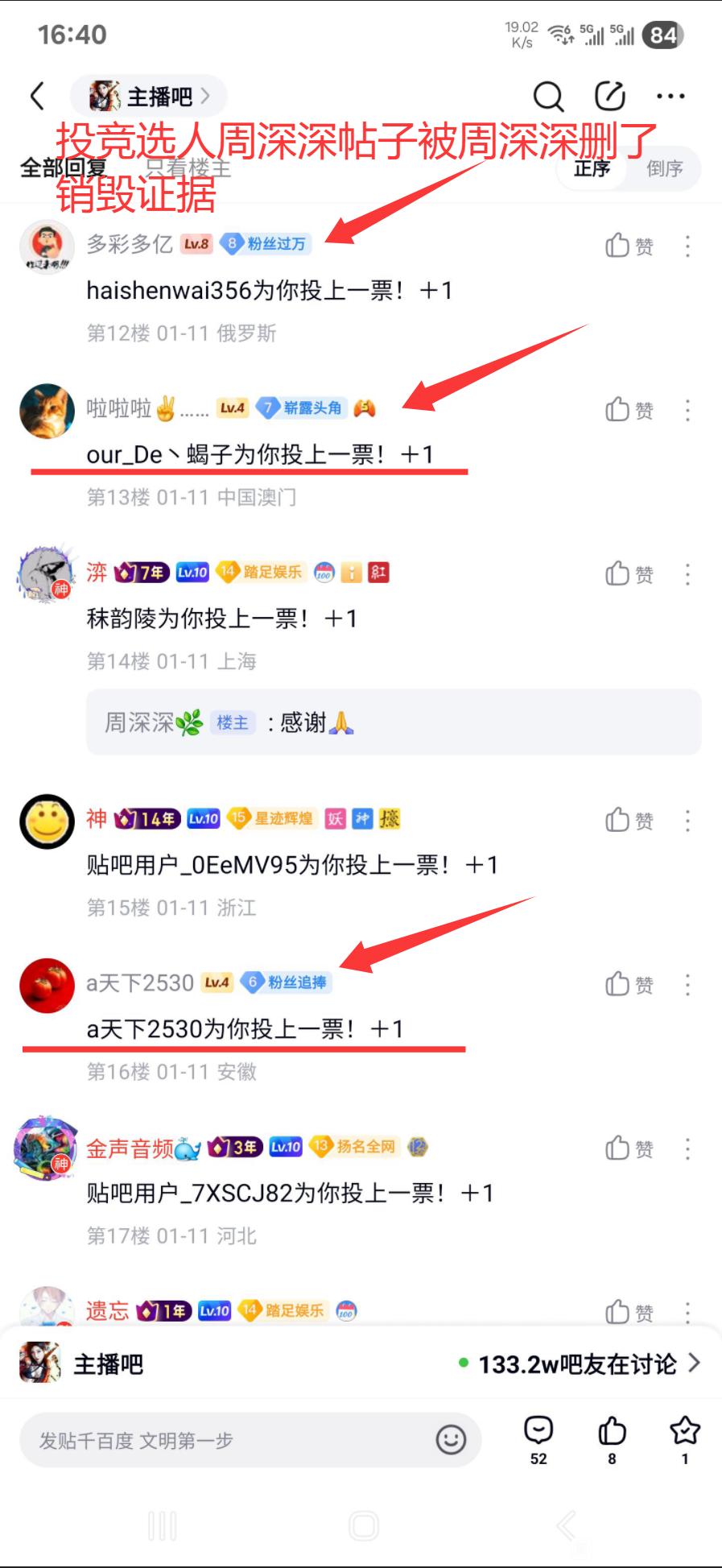 【02-06 | 日常交流】举报主播吧吧主周深深!包庇涉嫌贴吧违规人员发招募失足妇女广告帖