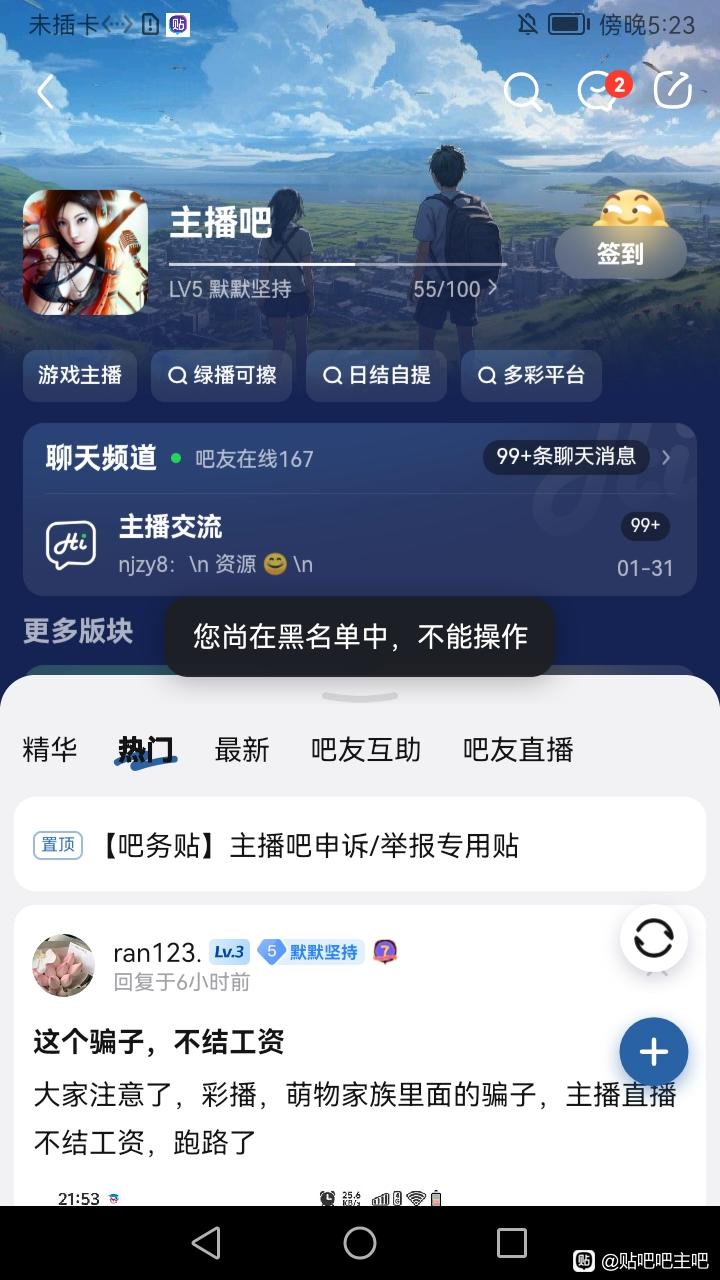 【02-06 | 吧主违规证据补充】举报主播吧吧主周深深无故拉黑我就这样吧