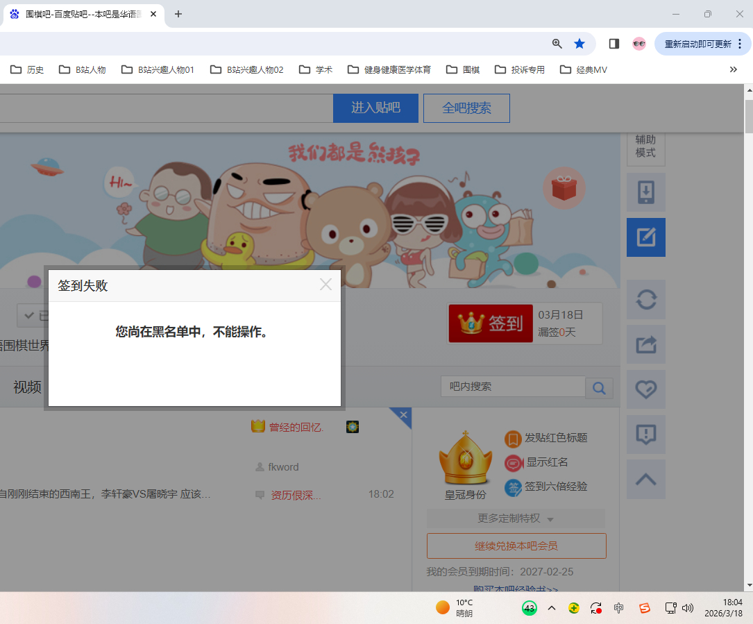 【03-16 | 求助咨询】请解除网吧吧的4级头衔发言限制