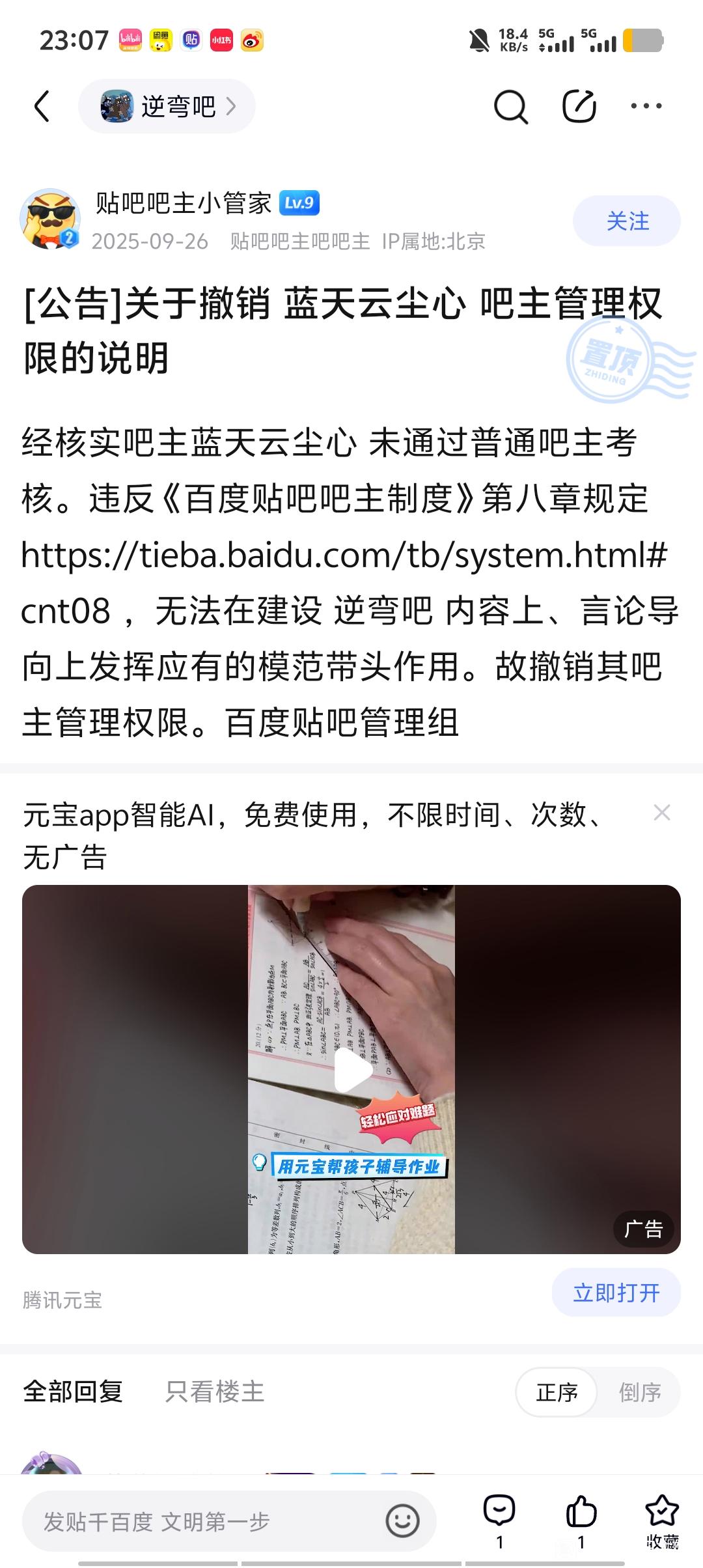【01-12 | 吧主违规证据补充】吧主自己置顶广告没人管吗