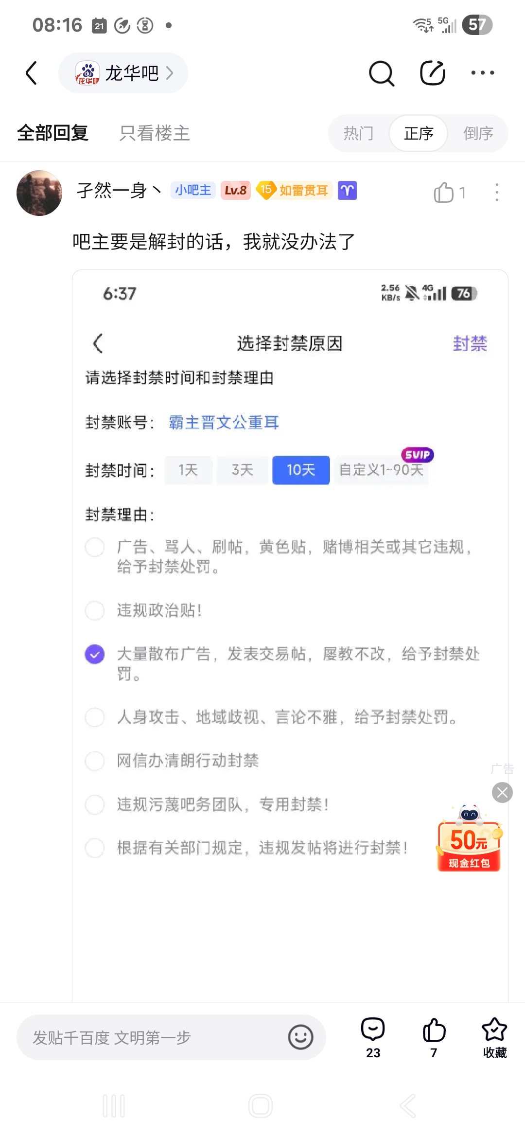 【01-30 | 求助咨询】举报龙华吧吧主不作为,恶意封号删帖