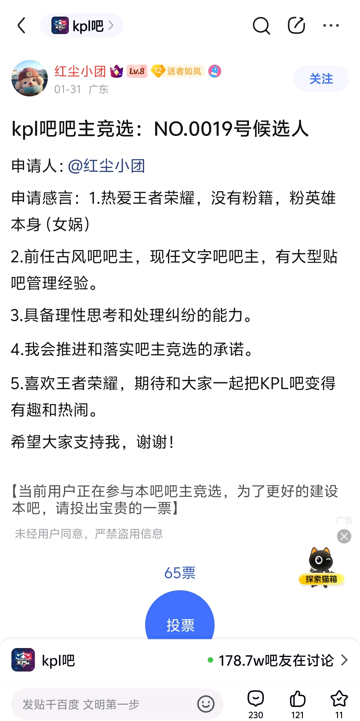 【02-04 | 竞选投诉】举报kpl吧候选人有贿选的嫌疑