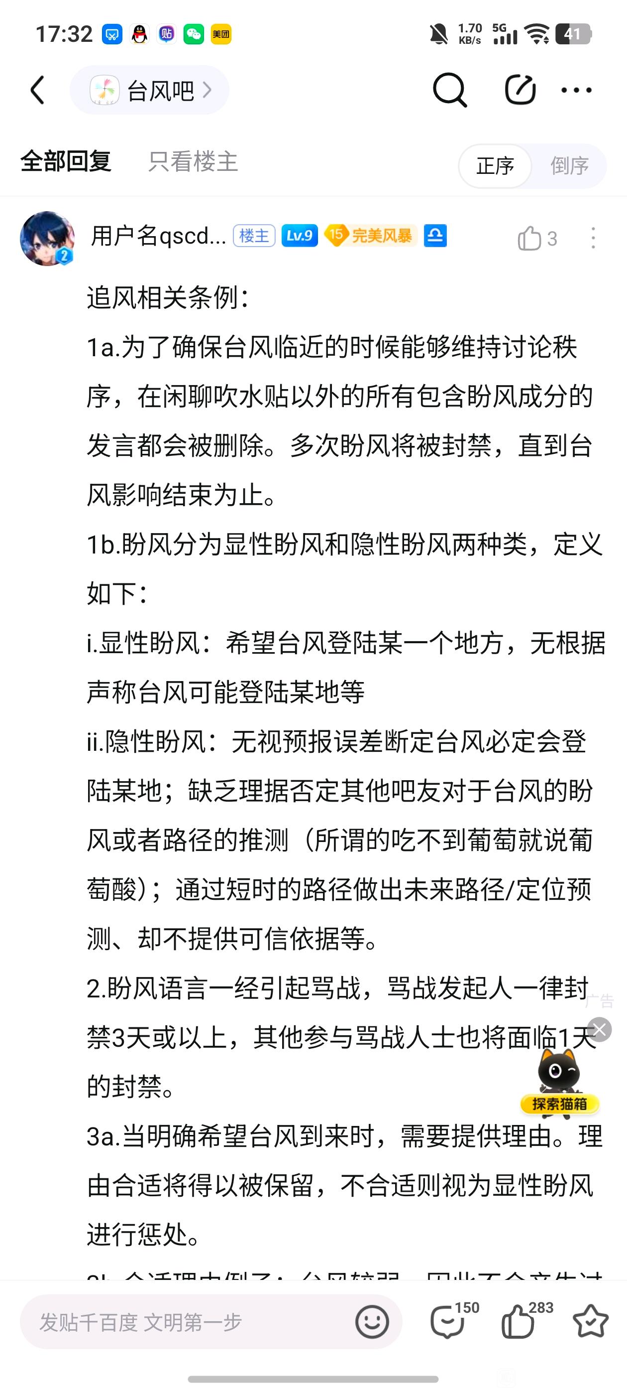 【02-04 | 竞选投诉】台风吧吧主在吧规未禁止的情况下将我封禁