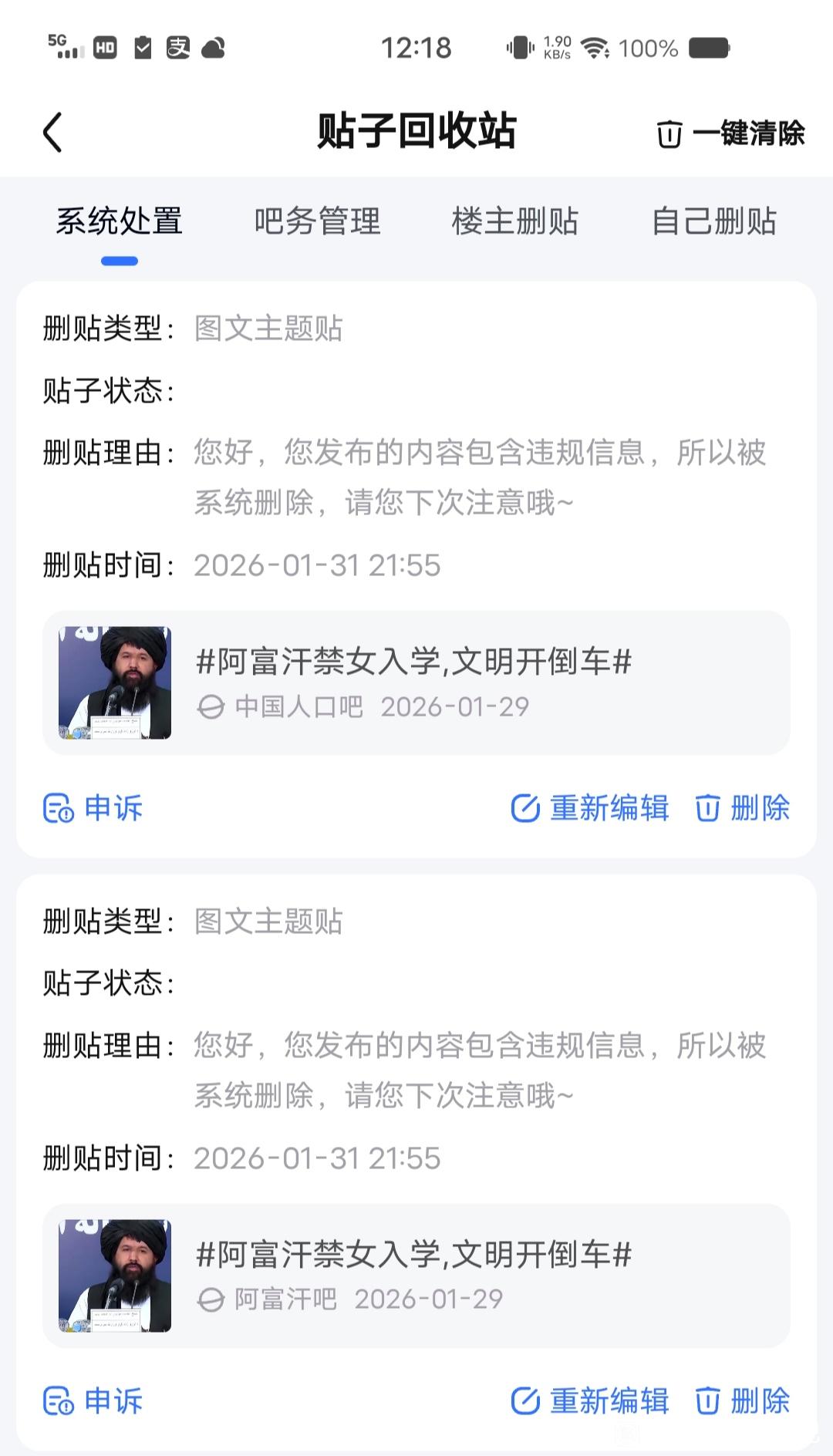 贴吧对我的账号进行全站永封并删除相关帖子,处理过程缺乏透明依据