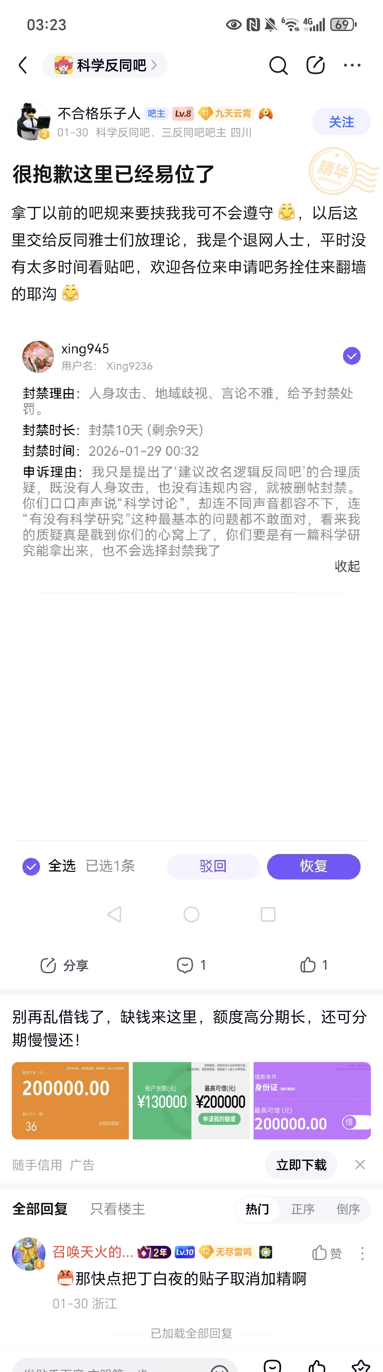 请封禁“否定态度吧”