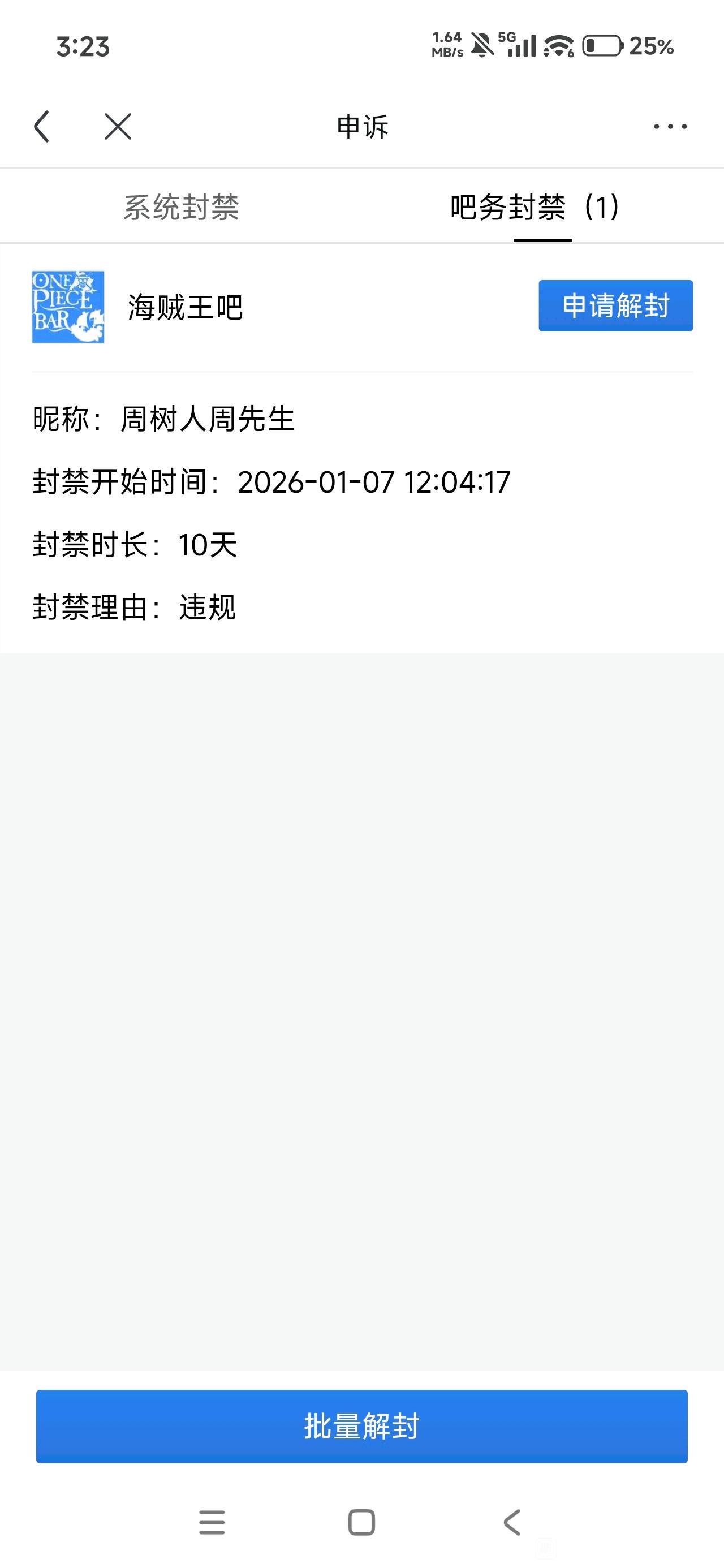 申请解封贴吧账号!