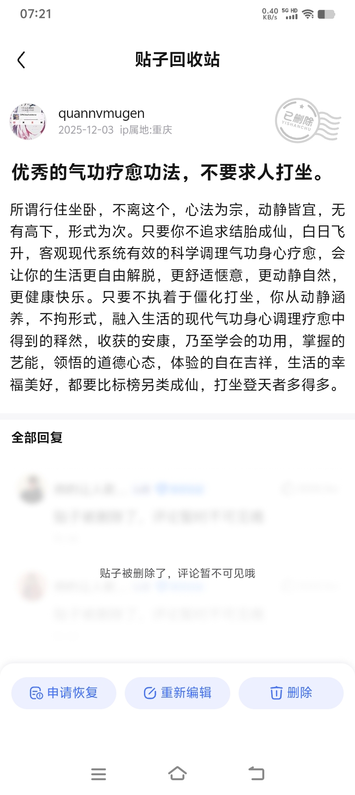 帖子被系统屏蔽无法恢复