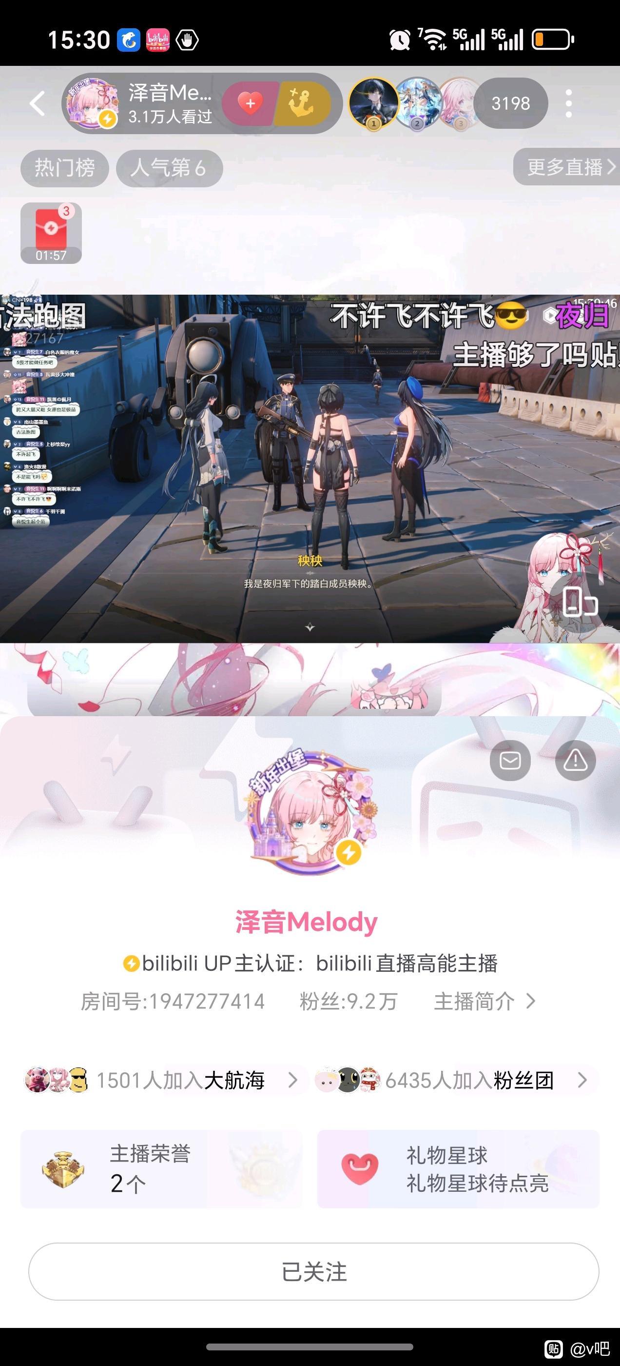 泽音9.2万粉丝了,再播几天就能突破vr要求的十万大关
