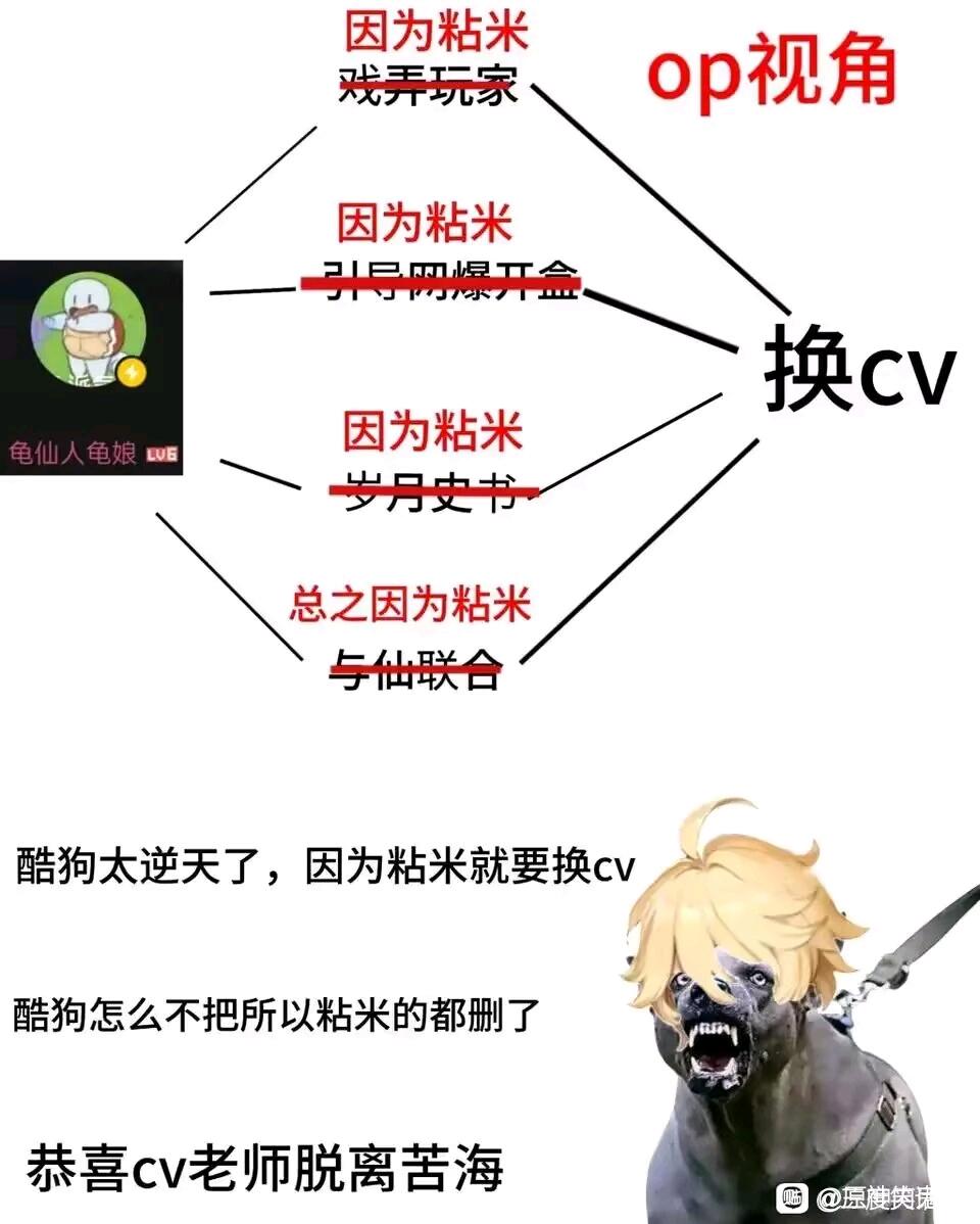 大哥,库现在的流水怎么也是前五,也是大游戏了,背后还有腾讯,她配的女主等于只要更新或者有活动就得她配音,这是长期饭票,这时候切割不是有病?
