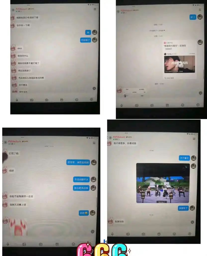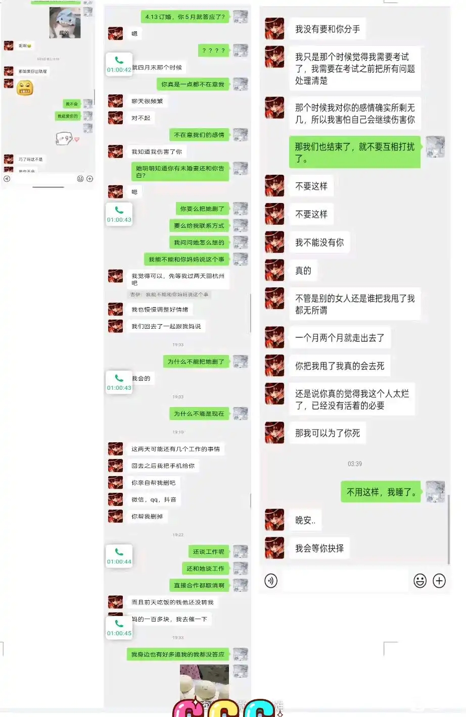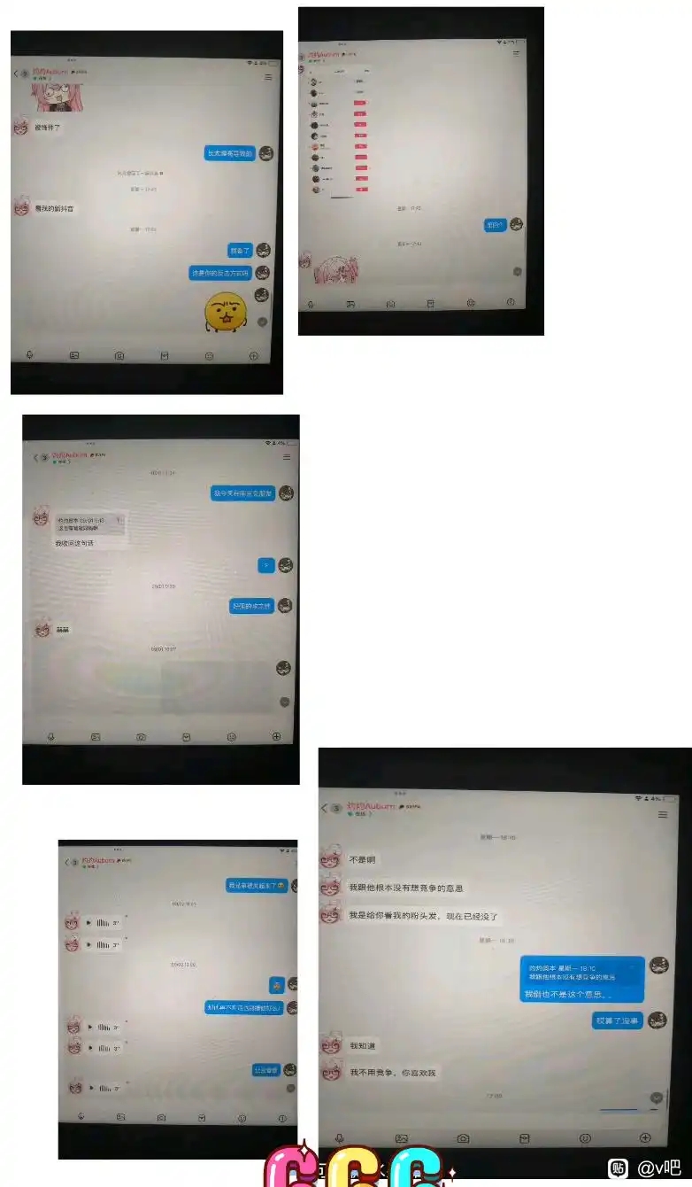 第一张和第二张图是灼灼奥本的回复,第3、4张图是男方和灼灼奥本的qq聊天记录,第5、6张图是男方和未婚妻的微信聊天记录(应该是,原图就这么糊,我也没办法)