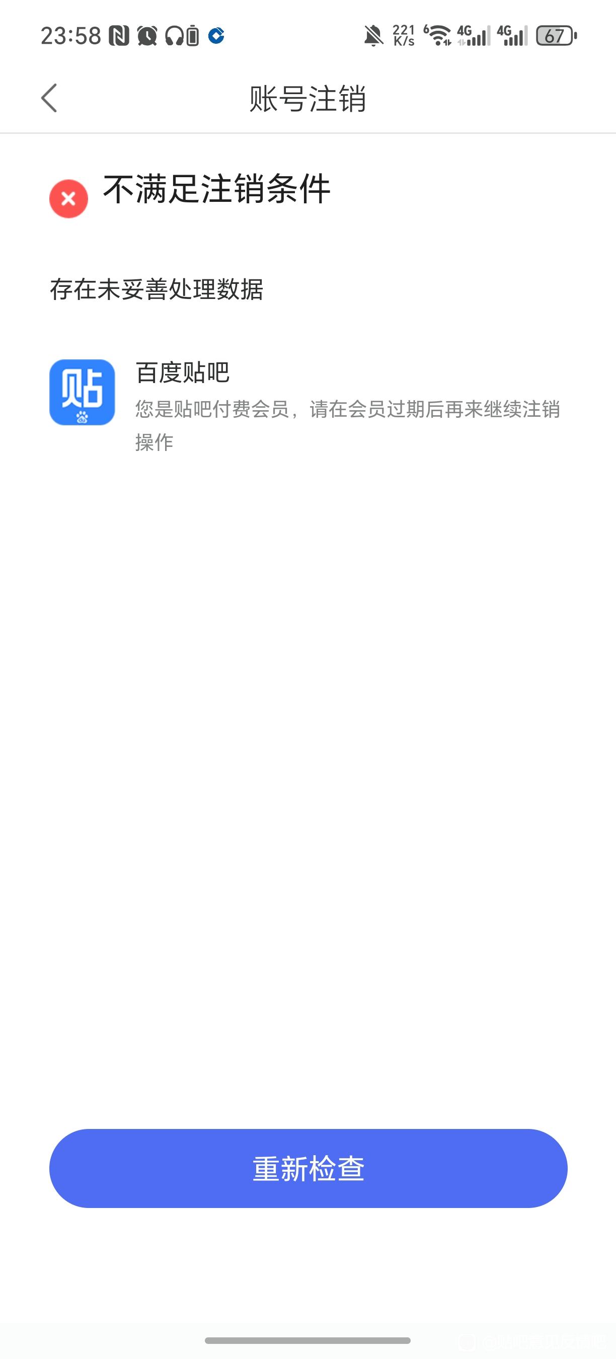 贴吧意见反馈吧 不是会员但显示我是会员无法注销tid:101953570762025/11/08 00:07:034622 0 0楼主:符洛容 洛容🌸最后回复:clairelutianyi贴吧用户_0abQUDA2025/11/08 00:15:321楼pid:1528315127722025/11/08 00:07:03符洛容洛容🌸 楼主 1级 怎么两块儿地方说法还不一样呢?要么送我永久会员,要么给我注销,别自相矛盾@贴吧会员 @贴吧阿Sir @贴吧Madam2楼3条pid:1528315428832025/11/08 00:15:32clairelutianyi17级 付费会员不等于VIP、SVIP你有任何蛋、任何卡、任何书等等都属于付费会员,都要消耗掉才能注销符洛容 洛容🌸 楼主 1级 都没有啊,唯一一次消费还是很多年之前买的t豆,也当时就用掉了伊卡饼干15级 回复 洛容🌸 :如果领了7天体验会员之类的就有卡、蛋了,各种蛋各种卡只能你自己查,不会查、查不全就是漫漫长路了符洛容 洛容🌸 楼主 1级 回复 伊卡饼干 :那我再看看吧,谢谢半个人旅行 🐇落朝花游侍🐇10级 回复 clairelutianyi :会员一日体验也算吗feifei1119379 要注销没有会员非说有5级 到底咋注销啊?咋样都不行,解绑也不行。3楼pid:1530734043672026/01/09 09:35:35feifei1119379要注销没有会员非说有5级 和楼主一样,帮忙注销@贴吧阿Sir @贴吧Madam @贴吧会员 @贴吧官方