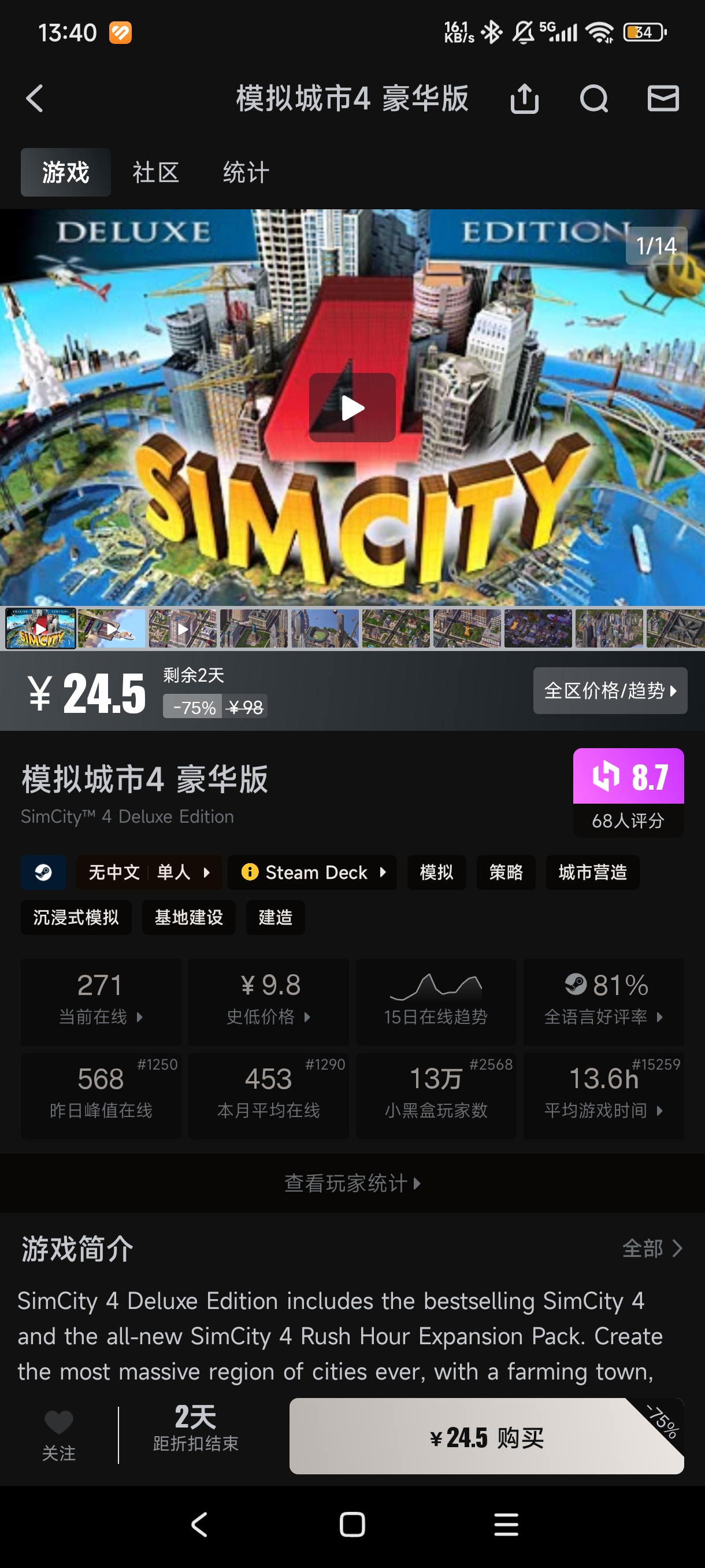 模拟城市吧 问问Steam版的tid:102635906862025/12/02 13:46:338443 0 0楼主:tbcssxd 熊头最后回复:风华绝代赵凌文凌云社-赵凌文2025/12/09 17:35:341楼pid:1529257325362025/12/02 13:46:33tbcssxd熊头 楼主 6级 Steam这个豪华版是包含了尖峰时刻吗?另外是最新版本号吗?2楼1条pid:1529259248282025/12/02 14:45:42xyl730玉酱옥림♤11级 steam豪华版就是全地图+全音乐的满配尖峰时刻tbcssxd 熊头 楼主 6级 谢谢大佬,吧里有STEAM版的汉化吗3楼3条pid:1529260514472025/12/02 15:23:45从前有座山256吧主15级 包含tbcssxd 熊头 楼主 6级 谢谢大佬游戏领域大便15级 能下载mod吗从前有座山256 层主 吧主15级 回复 游戏领域大便 :可以的4楼pid:1529454270312025/12/07 11:12:47小李子48152级 这个买了安装完一直黑屏进不去游戏,有什么解决办法吗?5楼pid:1529551605892025/12/09 17:35:34风华绝代赵凌文15级 豪华版是含的