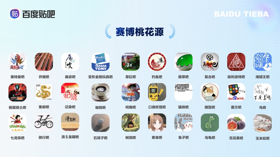 “赛博桃花源”是奖励的那些栖息在贴吧的小众兴趣——这些吧是用热爱浇灌出的小众花园,他们为贴吧宇宙增添了拥有独一无二的精彩,也让每个小众灵魂都找到了共鸣和归属。