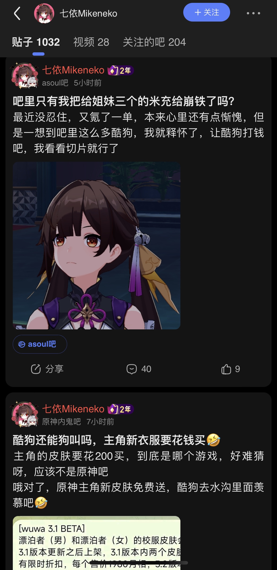 谢谢各位酷友对a手的支持,没有你们没有a手的现在,没有乃琳7w同接和全员破万,我在这里认错,对自己不小心攻击到的酷友道歉,是我自己精神不太好,反串过头了,我在这里诚恳道歉,我不应该反串,不应该攻击角色和角色厨(另外我确实不混反鸣吧,大家别误会,之前我也被反鸣封过一次)