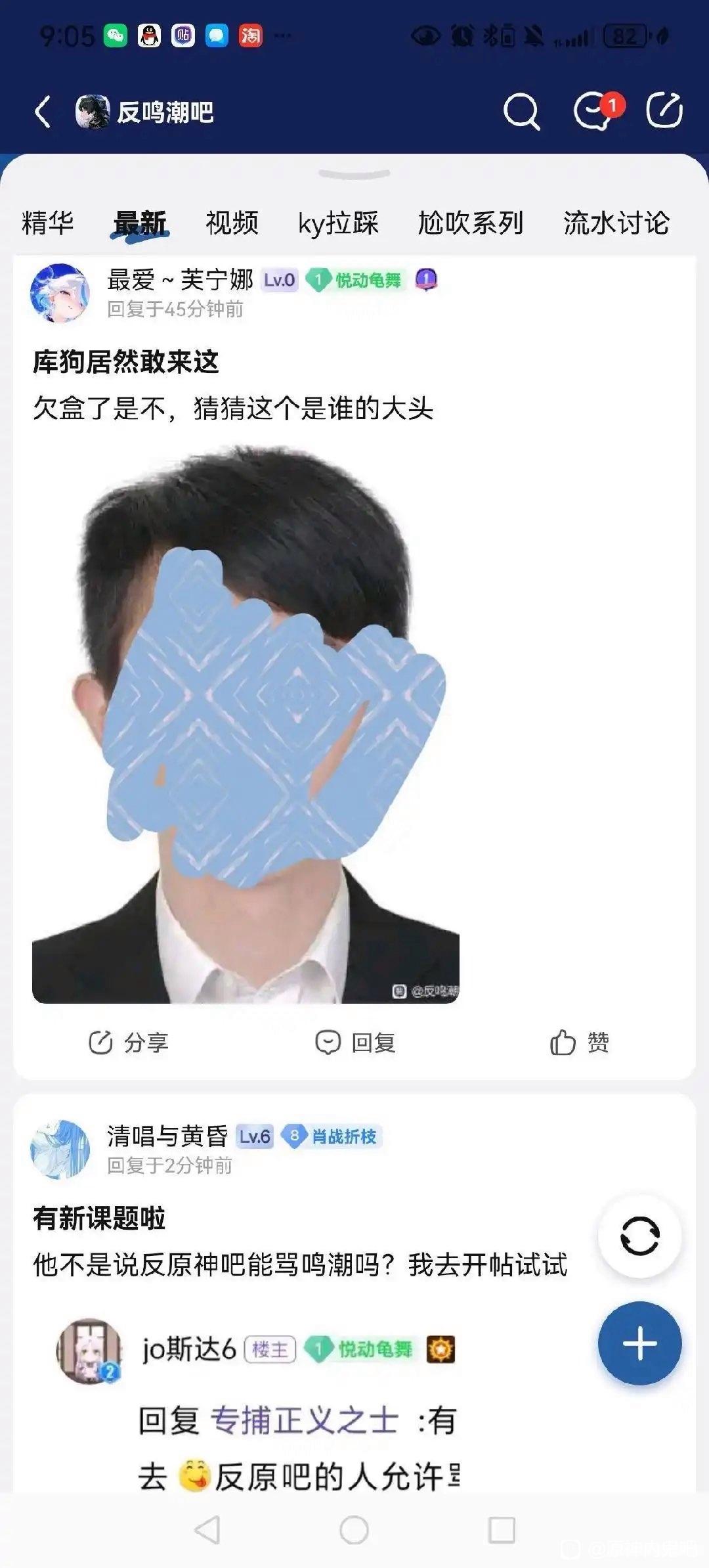 愤怒小鱼溺水了 一鸟渡江🌊回复:不然怎么说?发了散兵那图后,kg破防开盒米友?kg的动机是啥?kg又没破防,说说kg为什么要开盒官方群的所有人?连官方群里的自己人都开?明明好像只有那人因为那图破防吧。等等,你说的是鸣潮官方群群友被开盒这事吗?