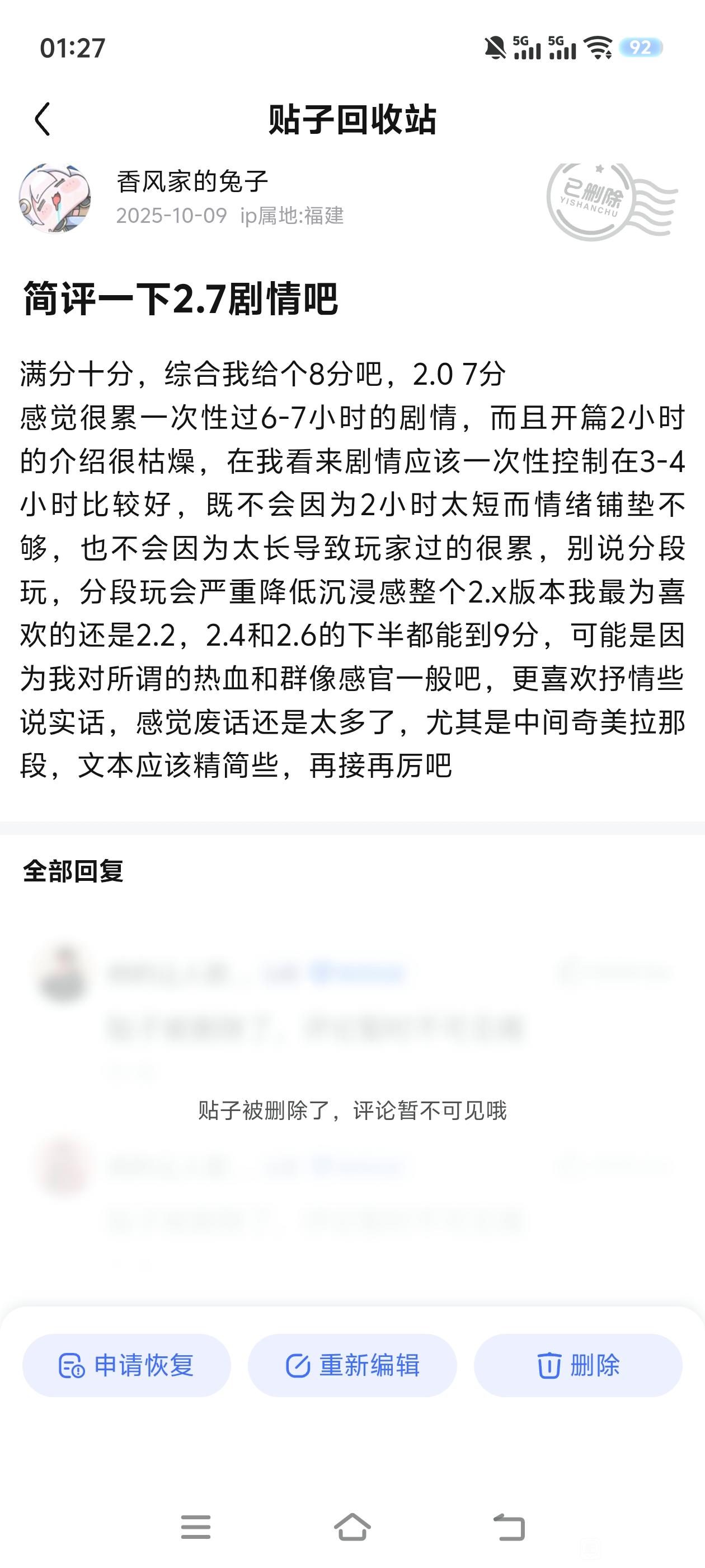 为什么很多kg逃难到A吧,因为这里串子多,也和二游社区不强相关,即使是看起来再真情流露的发言你也会告诉自己那是烂炒串子要小红点,然后开启复读一键防护,没啥心理负担。但爆吧的滑坡和反滑坡可都是真实的想法,你是没法催眠自己的。很无奈,但可预见的一两年内,这个社区环境都好不了。