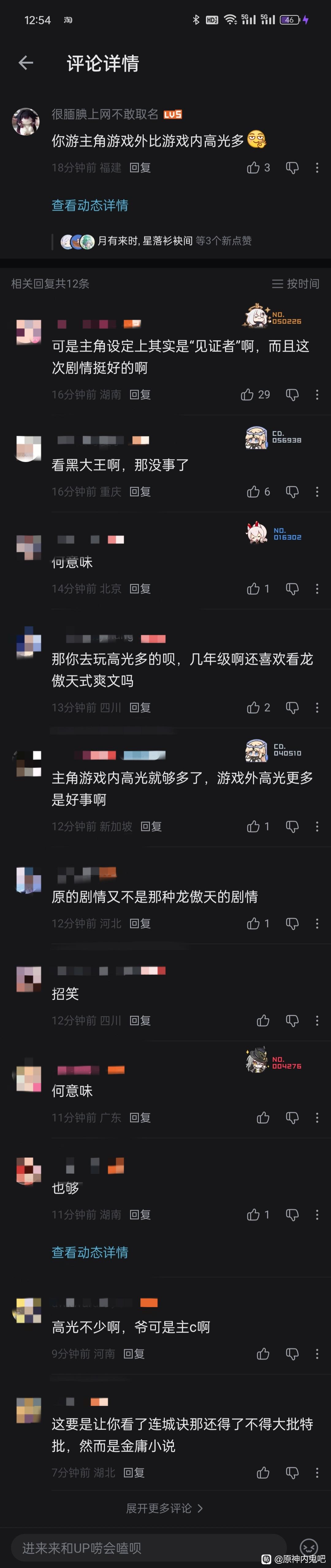 原神内鬼吧 孩子们,攻打天庭被论剑了😭tid:104021003512026/01/16 13:14:487281 0 0楼主:zyj_183500331_ 很腼腆上网不敢取名最后回复:斗明心见性吧 贴吧用户_aPDJAy22026/01/16 16:08:191楼pid:1530979057162026/01/16 13:14:48zyj_183500331_很腼腆上网不敢取名 楼主 2级 我知道的,当我选择离开的那一刻,我就放下了提瓦特人的身份。一天是kg,一辈子都是kg。原神的大门没有关,只是当我选择转身走时,提瓦特与我的羁绊已然消散,即便瞒着所有人再踏足这片大陆,也不再是纯粹的提瓦特人2楼pid:1530979221772026/01/16 13:20:28SYEfreedomSYE8级 提纯你懂吗。见证的意义就是当无能的丈夫3楼1条pid:1530979322542026/01/16 13:23:54crow873灰流丽的晓娇10级 看你还敢不敢去zyj_183500331_ 很腼腆上网不敢取名 楼主 2级 被老米畜牧业吓哭😭4楼pid:1530979735892026/01/16 13:38:18纯丶丶霈NS💢12级 我们也当米游的见证者5楼pid:1530980300902026/01/16 13:58:15SQC374005218黑犬黑犬😅8级 见证者说难听点不就是拿主角当垫子嘛…6楼pid:1530983220842026/01/16 15:33:24战地玩家皆是美国水军7级 从你不玩米开始你就是纸蜡烛了7楼pid:1530984284292026/01/16 16:08:19斗明心见性吧贴吧用户_aPDJAy21级