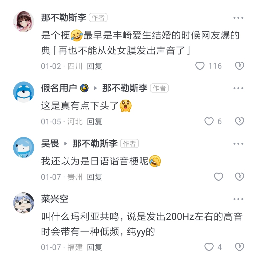 起始页vtuber吧 阴湿杏友在知乎给人科普处女膜发声原理😓😓tid:104035373612026/01/16 23:32:58101597 22 0楼主:surfisticatide 陀鸵鹿Owk最后回复:菜兴空佩克拉2026/01/17 20:09:481楼pid:1530997762322026/01/16 23:32:58surfisticatide陀鸵鹿Owk 楼主 11级 2楼pid:1530999245272026/01/17 00:20:28NonomiReina紫利普贝当15级 崩3楼pid:1530999373052026/01/17 00:24:48神秘之骑士7级 好活4楼pid:1530999587742026/01/17 00:32:30温酒煮華佗12级 无处不在5楼pid:1530999618672026/01/17 00:33:38SWhiteCheng東南海島見證奇兵10级 6楼pid:1530999972072026/01/17 00:46:50沉没之胡德v29级 只要听出我的推是雏女,它就是对的.7楼2条pid:1531006583182026/01/17 09:22:23菜兴空佩克拉12级 确实我Q996401711 媂利普贝当12级 是你吗菜兴空佩克拉 层主 12级 回复 媂利普贝当 :我是何人?8楼pid:1531011158342026/01/17 12:09:49purple蜡烛的处理激动9级 令人作呕的全息猪9楼pid:1531017900182026/01/17 16:12:44surfisticatide陀鸵鹿Owk 楼主 11级 令人感叹