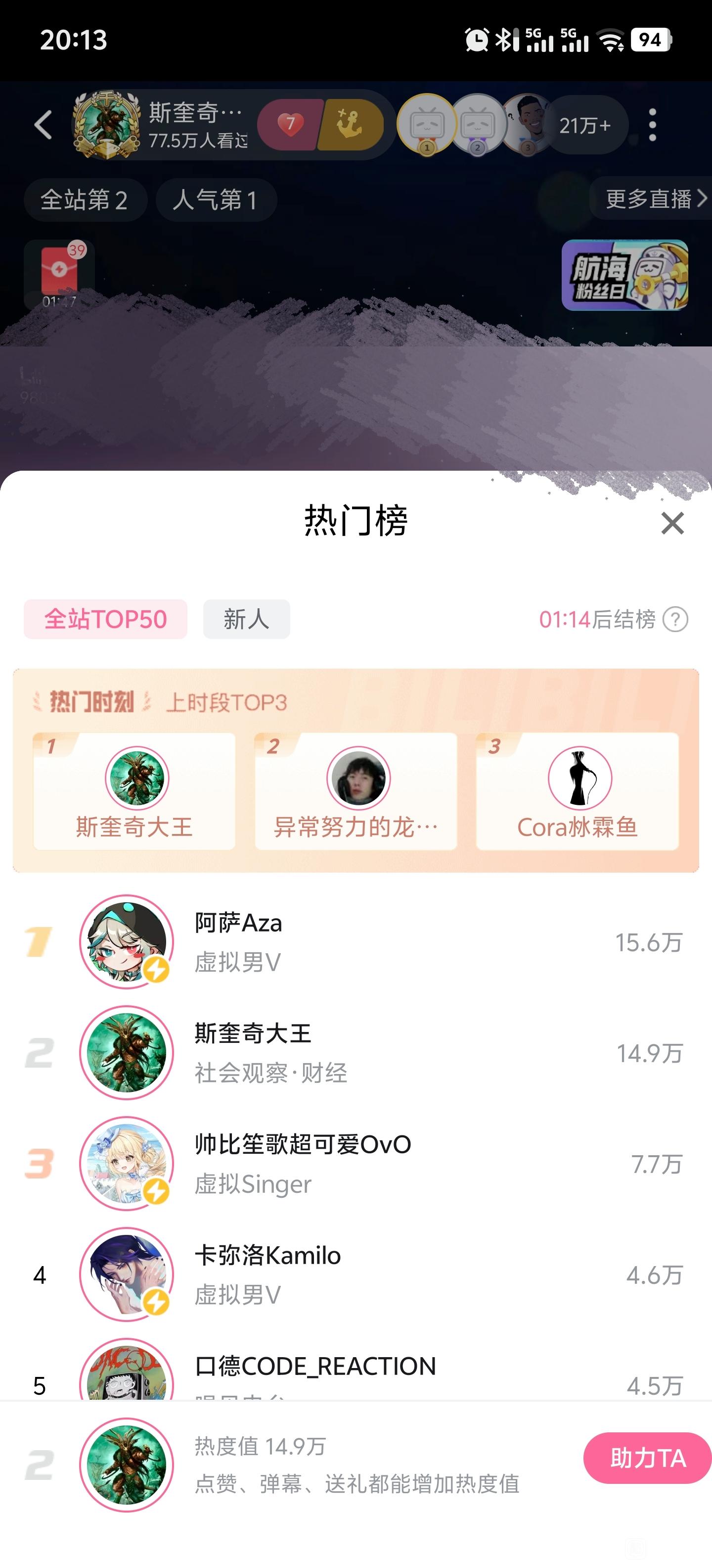 aza直播一直有女粉打钱啊,b站这榜就这样啊