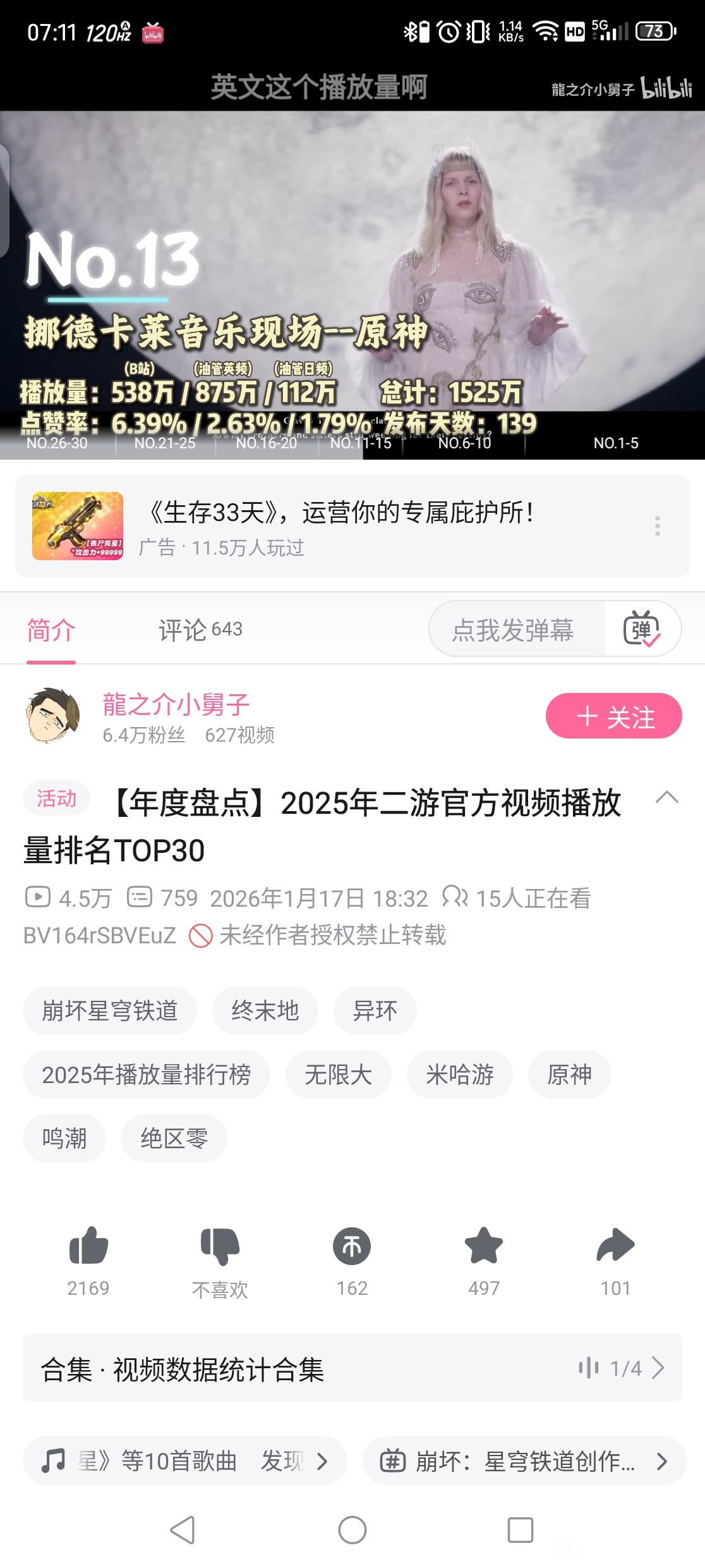 原神视频下面播放量前20有一个是25年的吗?