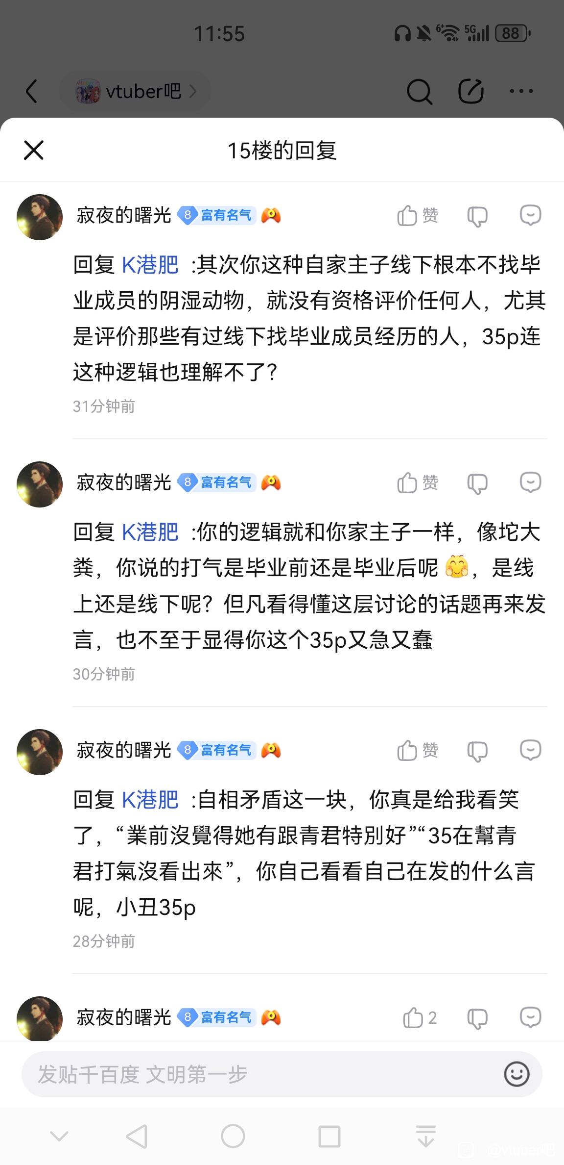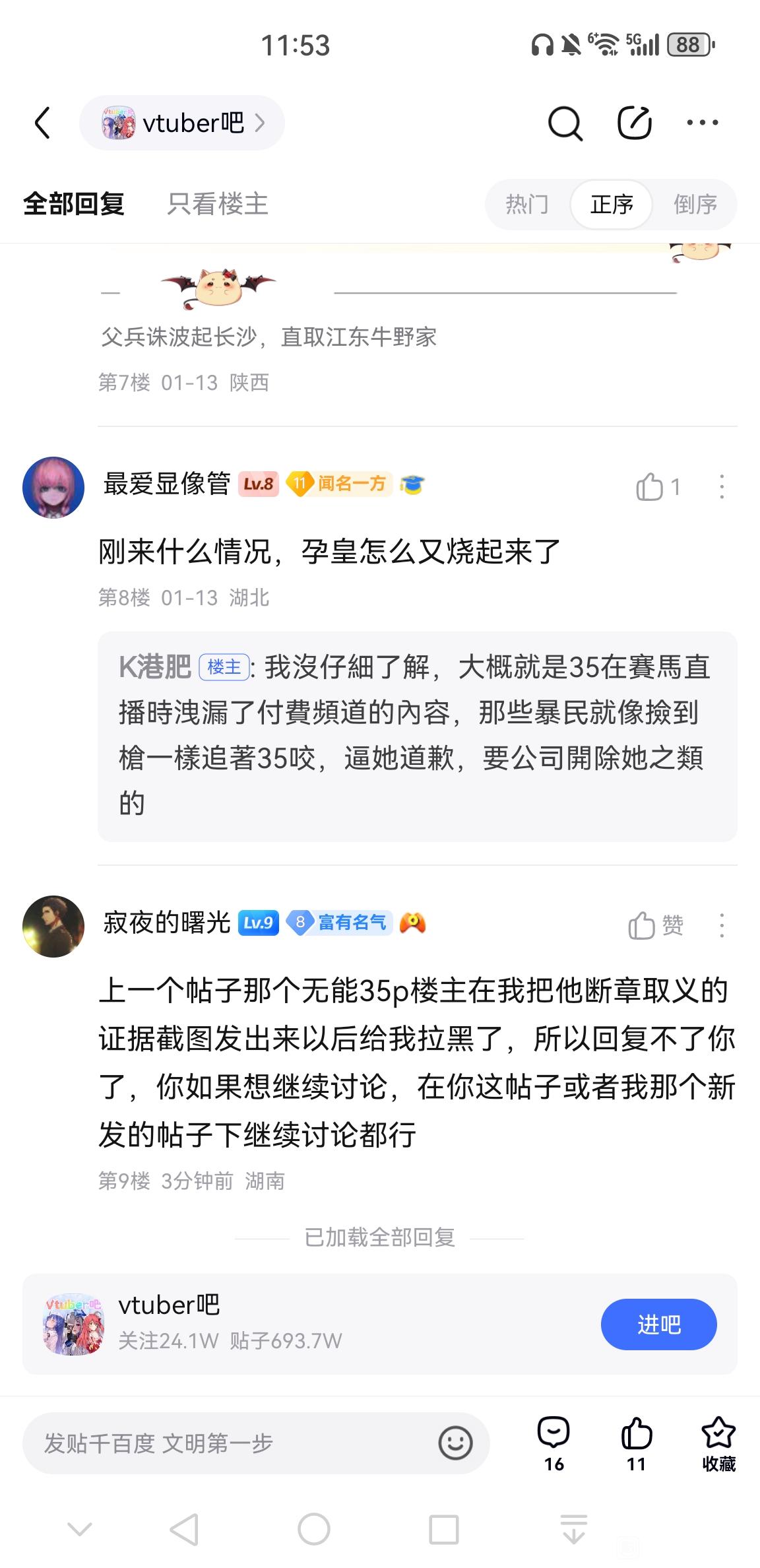 寂夜的曙光回复:和我上面回的一样,拿个能被一眼戳穿的内容当论据不就纯纯当小丑招笑了,而且开团全体v这种事正常人也做不出来,是有多恨能做到恨这么多人,顺便一提我对35本人的意见还没有我对下面这群35p的意见大,我唯一针对的就是我曾经推的菲🐵,而且举的论据也会带较合理的内容