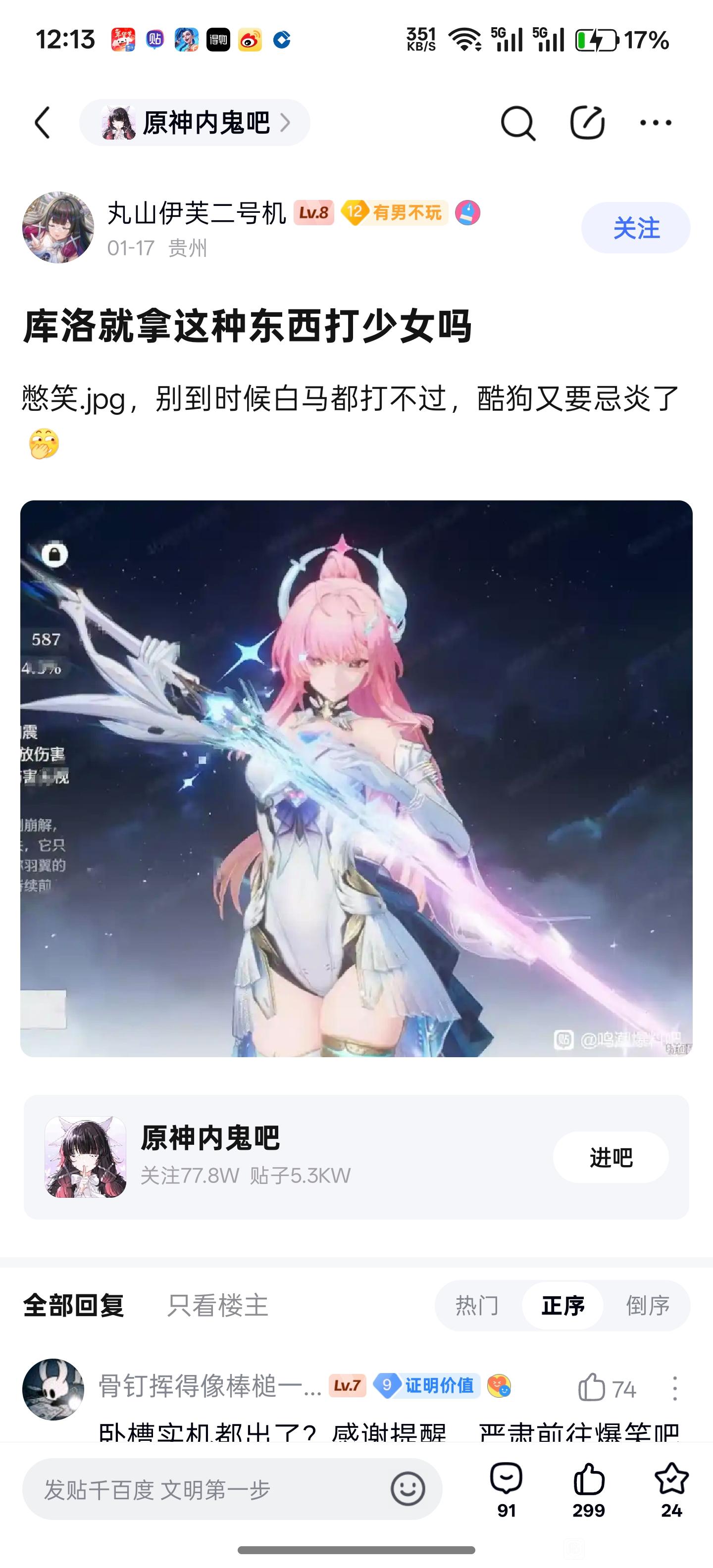 贴吧用户_Jt3D25G- 回复:不管你承不承认,现在米库社区是最臭的两个社区。正常人都能看出来库洛就是对标米的。不然鸣潮玩家为什么去拉踩米不去拉踩鹰角?而且鹰角粉丝的凝聚力比米强多了,真打起来库洛也占不到便宜。米社区游戏多分散不说,玩家群体经历了这么多年除了一些小鬼刚接触的压根没有多少人高强度社区对战,不然原神粉丝数是鸣潮的四五倍为啥社区基本都是鸣潮在赢?