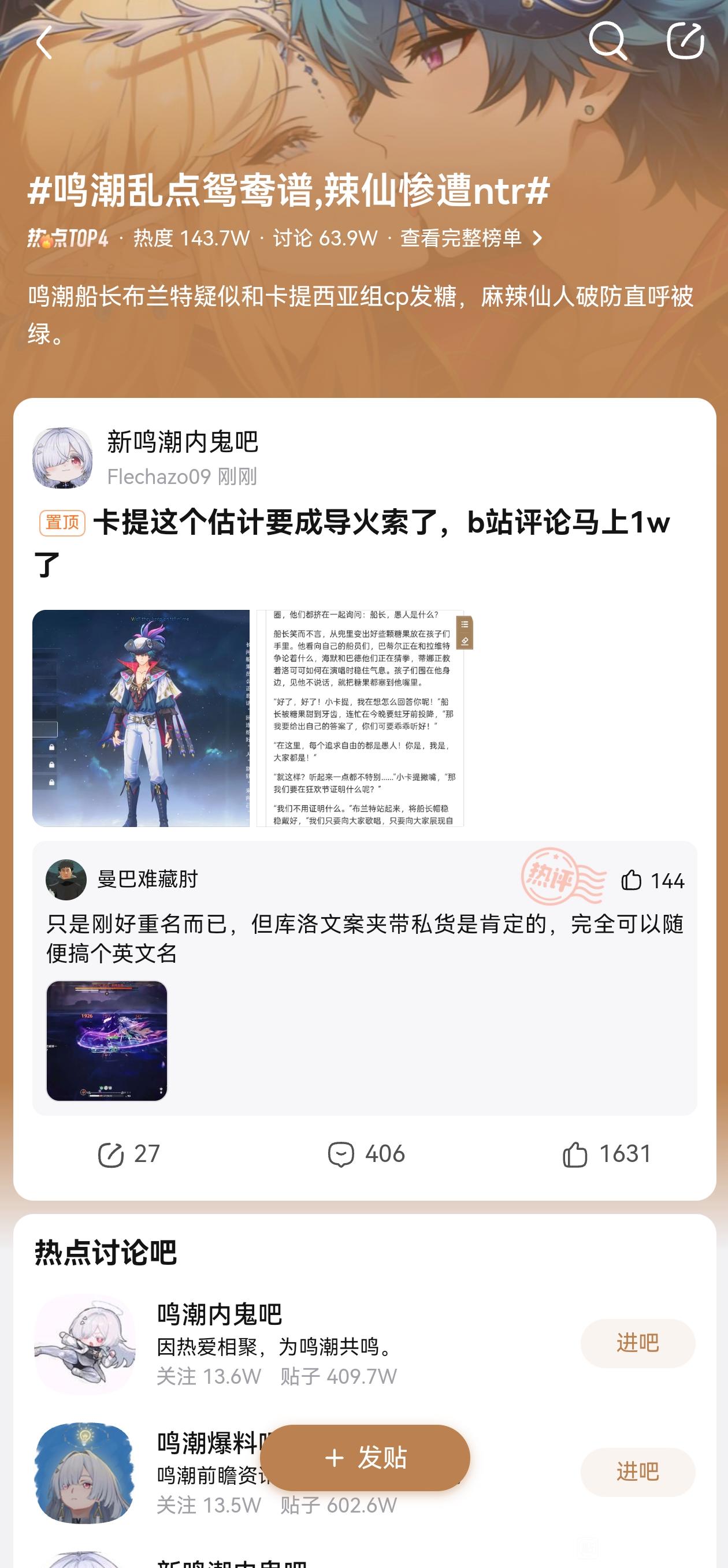 2楼1条pid:1531134423642026/01/21 00:10:12Evoltoltopacevol 楼主 10级 #鸣潮乱点鸳鸯谱,辣仙惨遭ntr#Evoltolto pacevol 楼主 层主 10级 卡提希娅和布兰特这对太甜了,我没得说