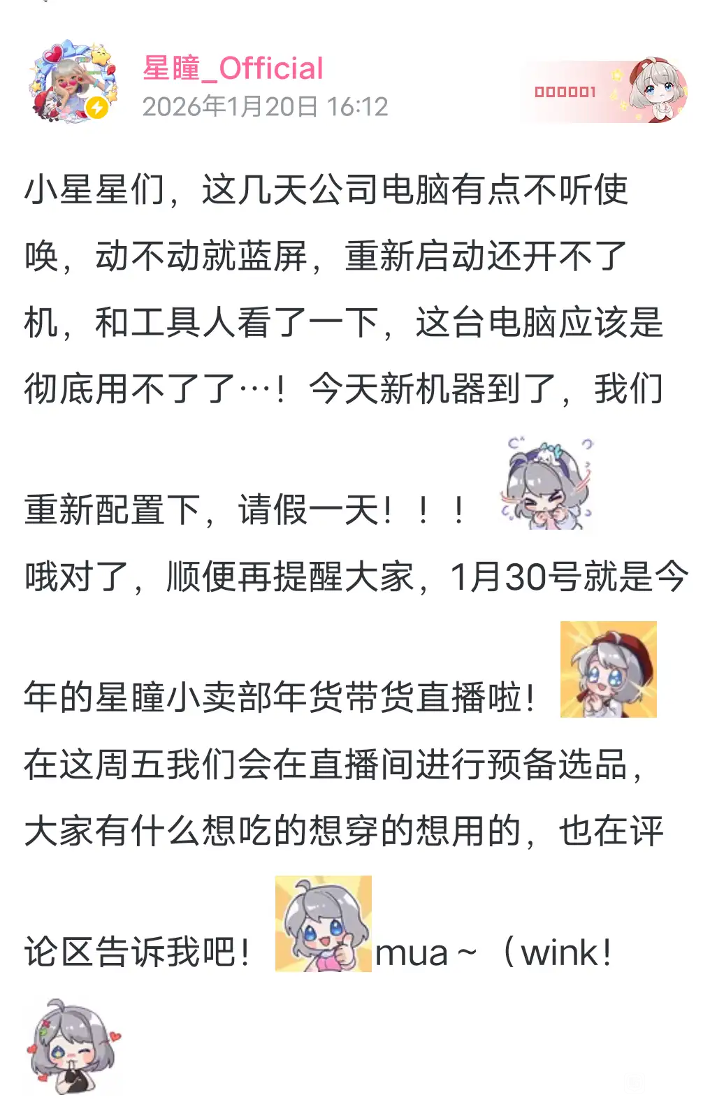 真是给我气笑了找理由能不能找个像样点的,偌大的深月连空闲的电脑都没有吗,坏了一台就彻底瘫痪了是吧,这种低级借口你自己信吗?动不动就蓝屏我看是你心态蓝屏了吧。设备坏了是理由吗,不播2d不会播电台?哪怕挂个背景聊聊天很难吗?我看你就是不想播,本质敷衍,怕暴露虚环参与度低,怕露馅是吧