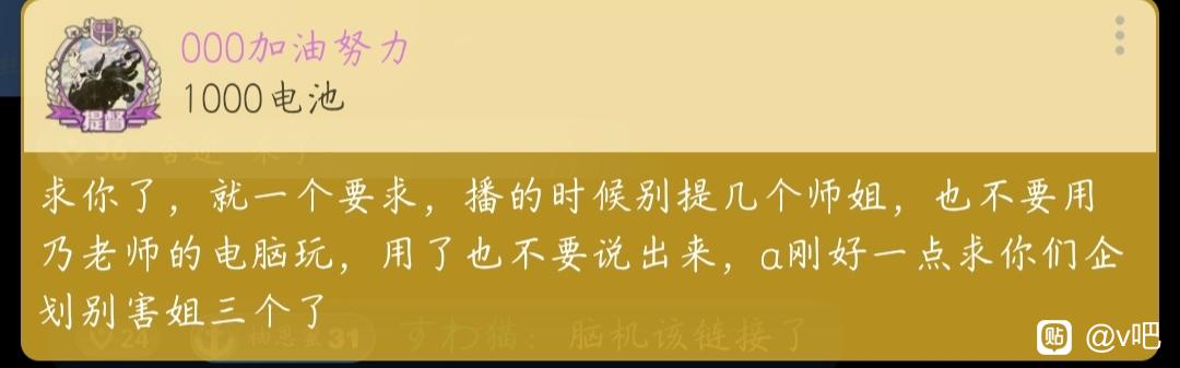 求你了,就一个要求,播的时候别提几个师姐,也不要用乃老师的电脑玩,用了也不要说出来,a刚好一点求你们企划别害姐三个了
