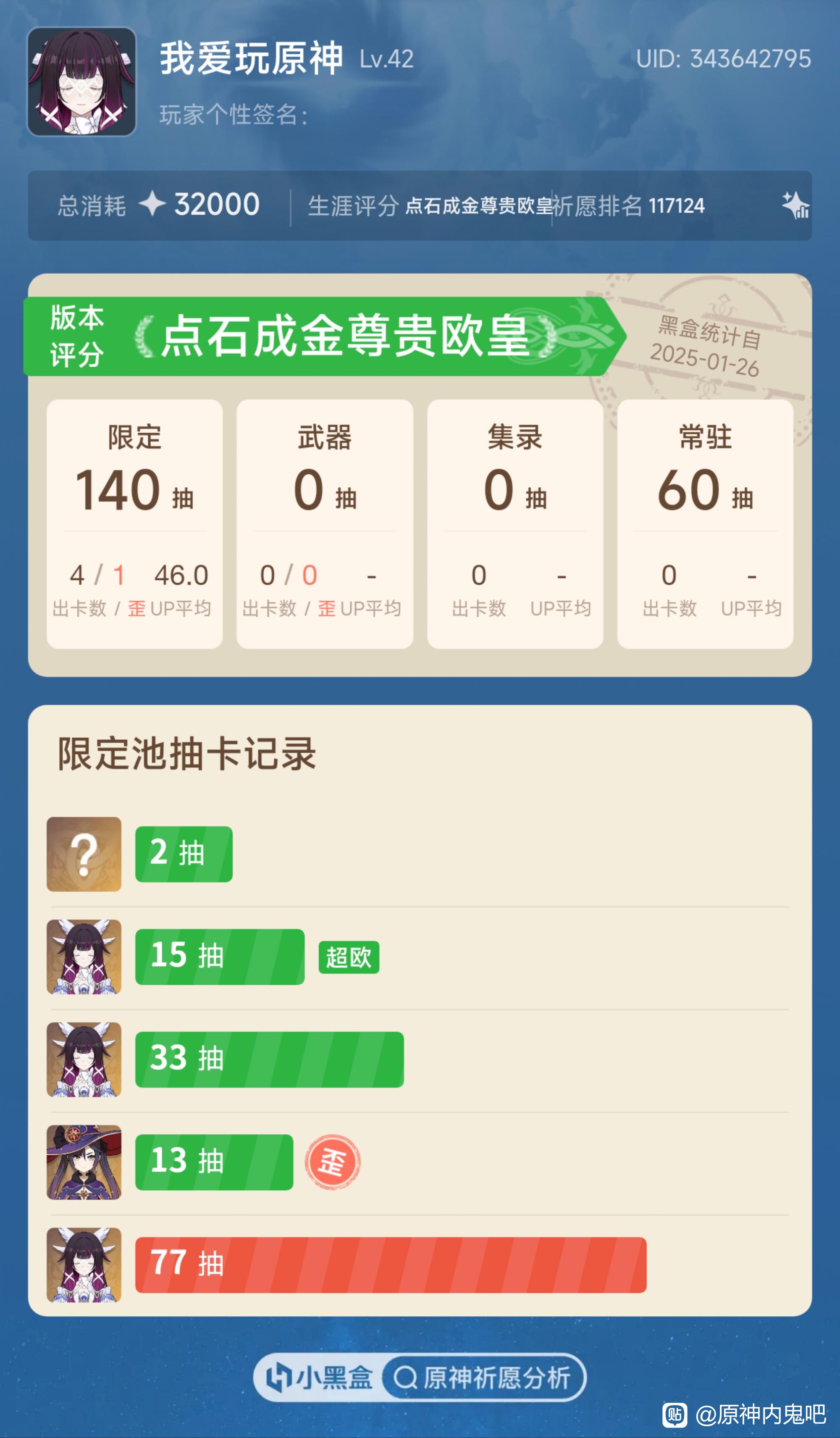 1楼pid:1531167547602026/01/22 00:03:55上启道三笑川258 楼主 6级 米小子是对的,小号改名后直接狠狠出货,140抽二命少女,这就是学长的福报#原神月之四##哥伦比娅#
