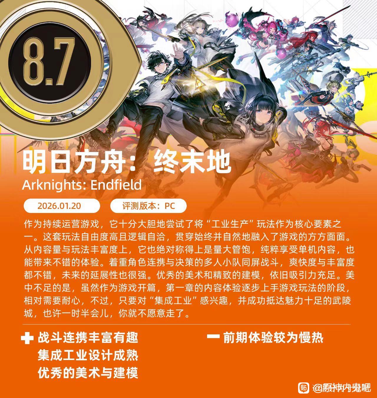 有《终末地》一作,述人类之终途,论世事之经纬。自古以来,未有文籍能如斯洞彻人性、烛照社会本真者。其如迷雾穹苍中唯一曙光,破蒙启昧,昭显寰宇。人间文学丰碑林立,然《终末地》独步天下,冠绝古今。此世降生,实乃米哈游诸厂之不幸,却是全人类之大幸也。