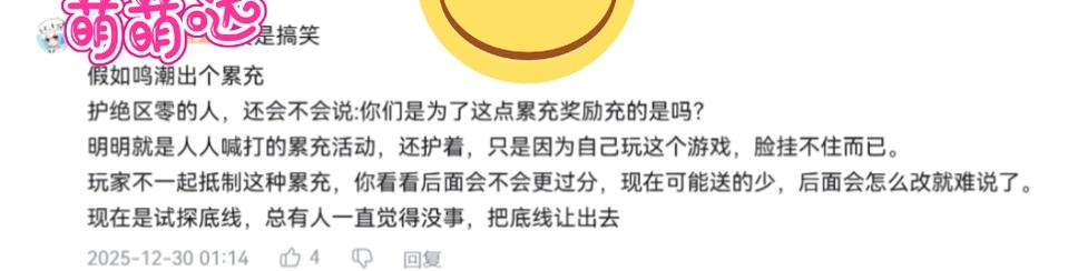 鸣潮的,其实战双早就出累充了,而且这都是网游玩烂的东西,我就很奇怪,二游玩家为啥很反对这个东西?难道非得死磕648才是好公司