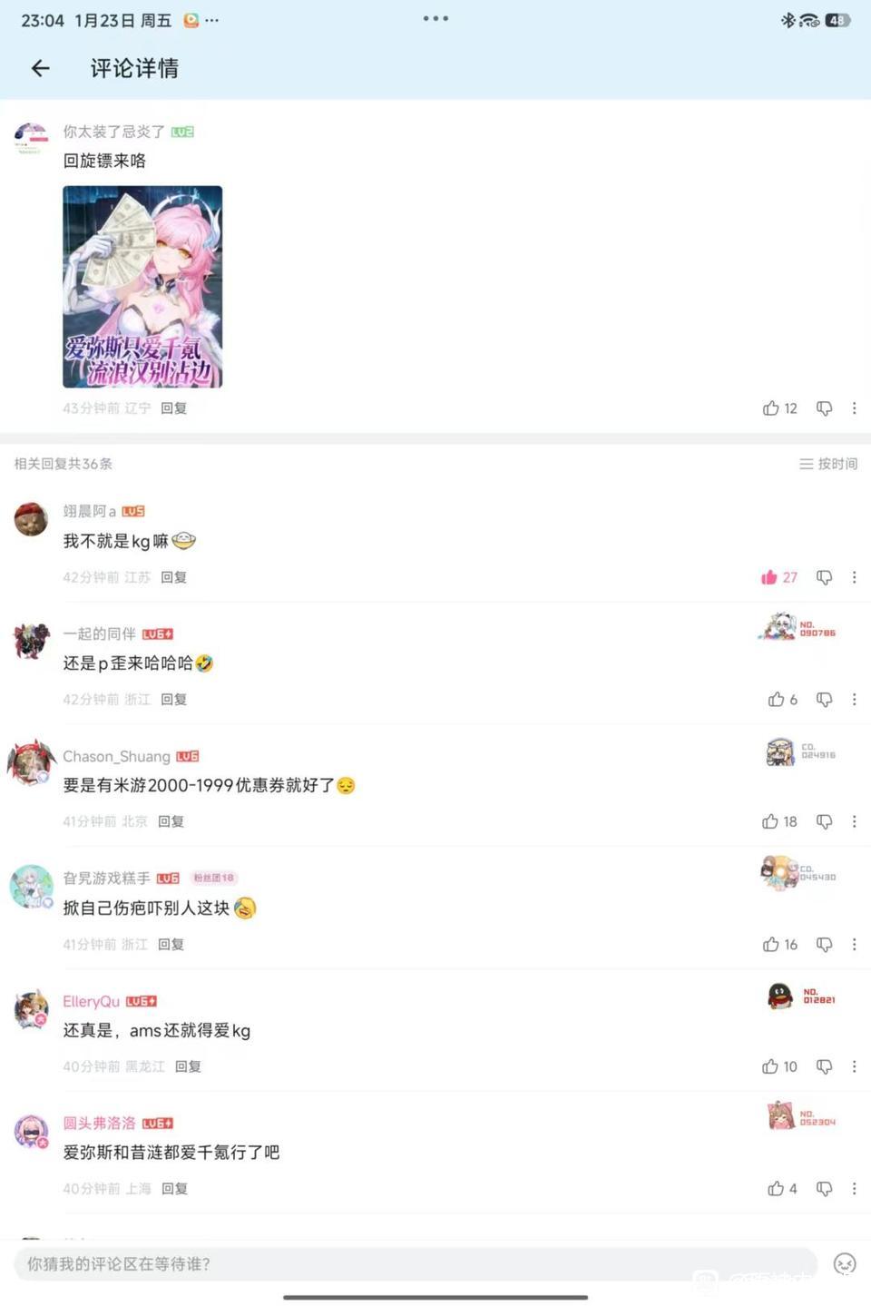 起始页原神内鬼吧 myg神了tid:104245995262026/01/23 23:20:284644 2 0楼主:金克丝我老婆2最后回复:经济不能盲目 亚煞极ლლ2026/01/26 12:16:011楼pid:1531234614872026/01/23 23:20:28金克丝我老婆2 楼主 2级 3楼1条pid:1531297104642026/01/25 22:16:59枫林晚a5级 djxjxnxmxjdjfj 睦子米酱suki10级 眉目的故而4楼pid:1531313415092026/01/26 12:12:15呃呃呃奋斗奋斗1级 洗脸是🐔5楼pid:1531313521302026/01/26 12:16:01经济不能盲目亚煞极ლლ10级