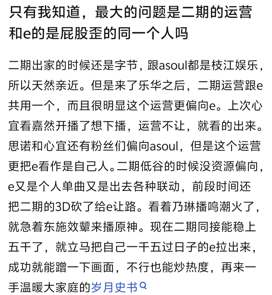 因为动捕棚搞仇恨教育我是真没搞懂,e从半年前就开始减少双播,有时排班出来明显是棚子紧张评论区也都是理解没有闹的,下半场3D急吼吼下播更不是一次两次,就露早上次3D不就是话没说完就下播连ed都没放?这种事情不仅e这边有,我相信枝那边肯定也有,随着人越来越少这种事情只会越来越多。我以为两边一直默契的没闹是知道这是乐华的锅闹也没用,怎么现在突然就变成是e的锅了。。。
