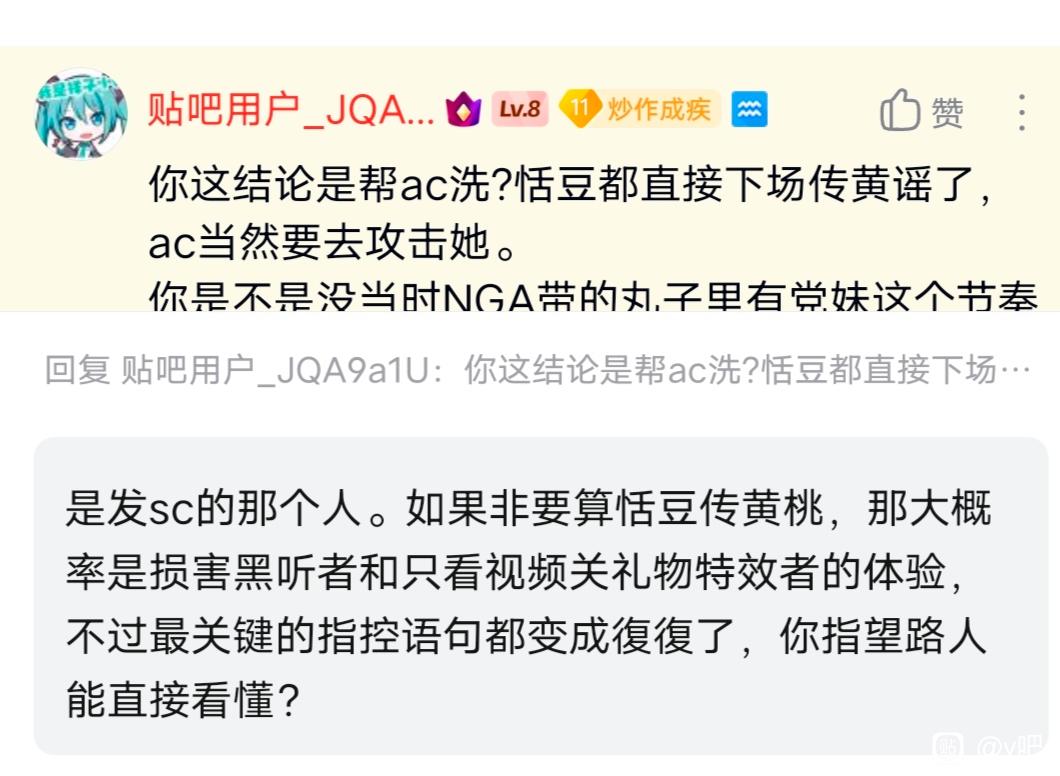你这结论是帮ac洗?恬豆都直接下场传黄谣了,ac当然要去攻击她。