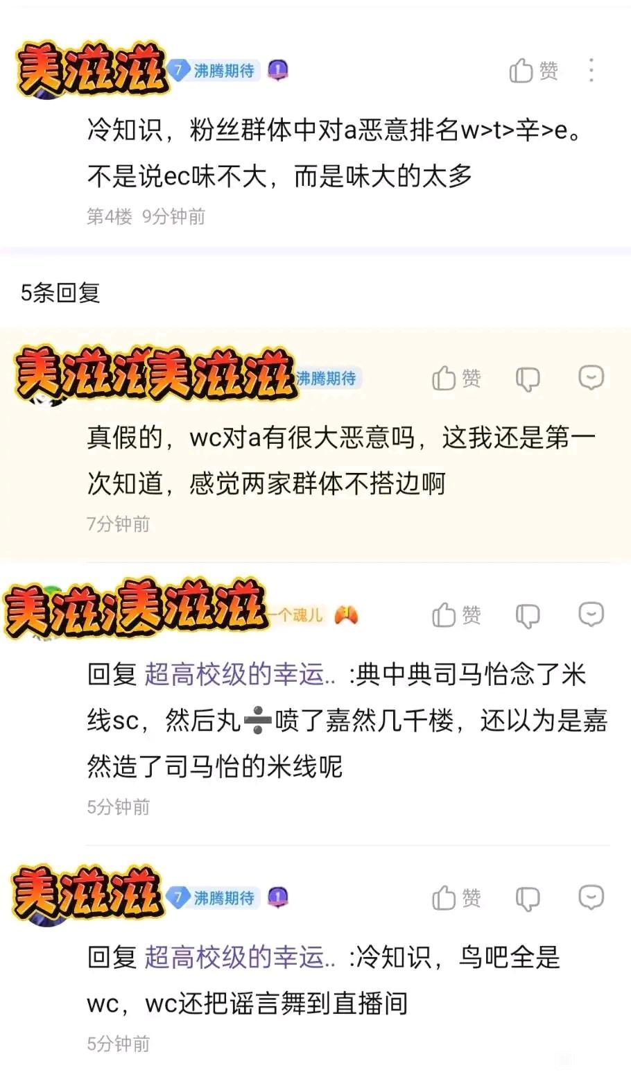 推倒叔叔的萝莉 永远单推陈睿回复:我给你屡屡我的时间线 冰火歌会炫小子sc发出来-甜豆念了sc-v吧疯狂烂炒挑拨满屏幕都是这个帖子炒作贴-冰醋不管-当时糖男甚至一口气发了十几个帖子刷屏-wc也在v吧跟炒作-qq频道养老院发布v吧刷屏骂嘉然信息-有几个绷不住的辱骂甜豆-被截图发v吧进行二次炒作-整个v吧页面点艹a和嘉然各种羞辱词汇刷屏-v87去甜豆评论区帆船终于引流到嘉醋合流-底下说是网暴一半都是在羞辱asoul和嘉然-从这事以后甜豆正式踩头a登台在v吧刷屏到去年生日会结束