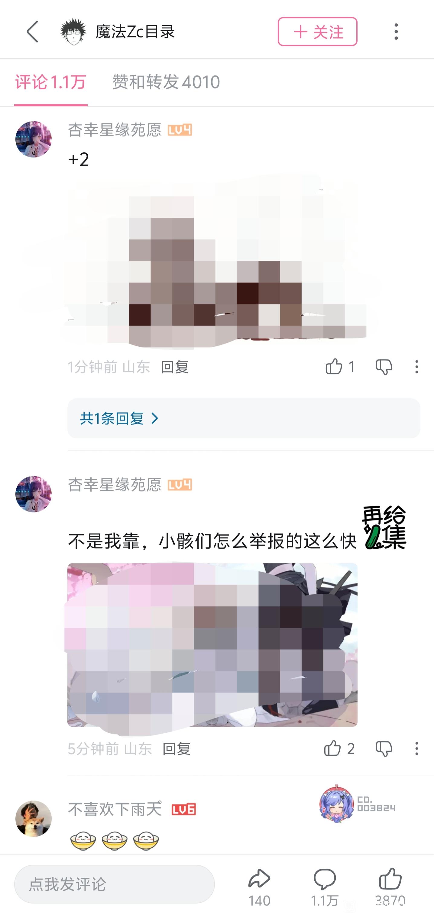 4.zc转发那个动态刚开始恶2000评论是没有鬼图的,但是到11点左右,突然有人发了鬼图(已确认第一个发鬼图的是米野狗),评论数直接飙升至1.2万