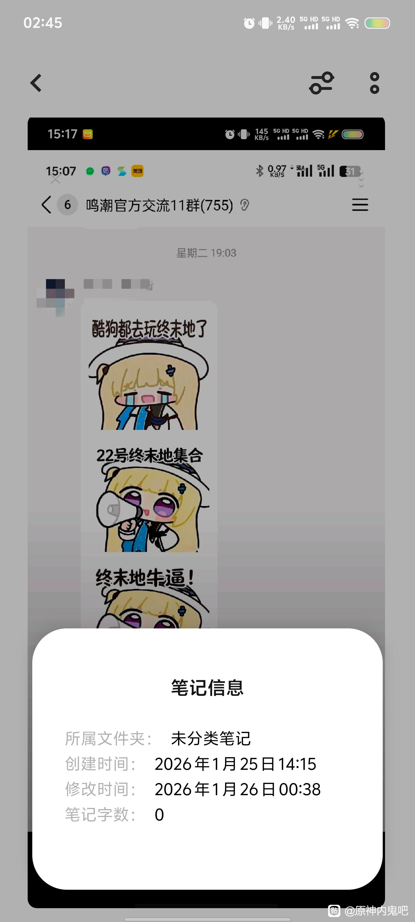 2.菲比表情包在终末地公测前一天已经在qq群广为流传,且在公测当前被各个领域的qq群传播。说明白点就是发菲比表情包的人可能连鸣潮是什么都不知道