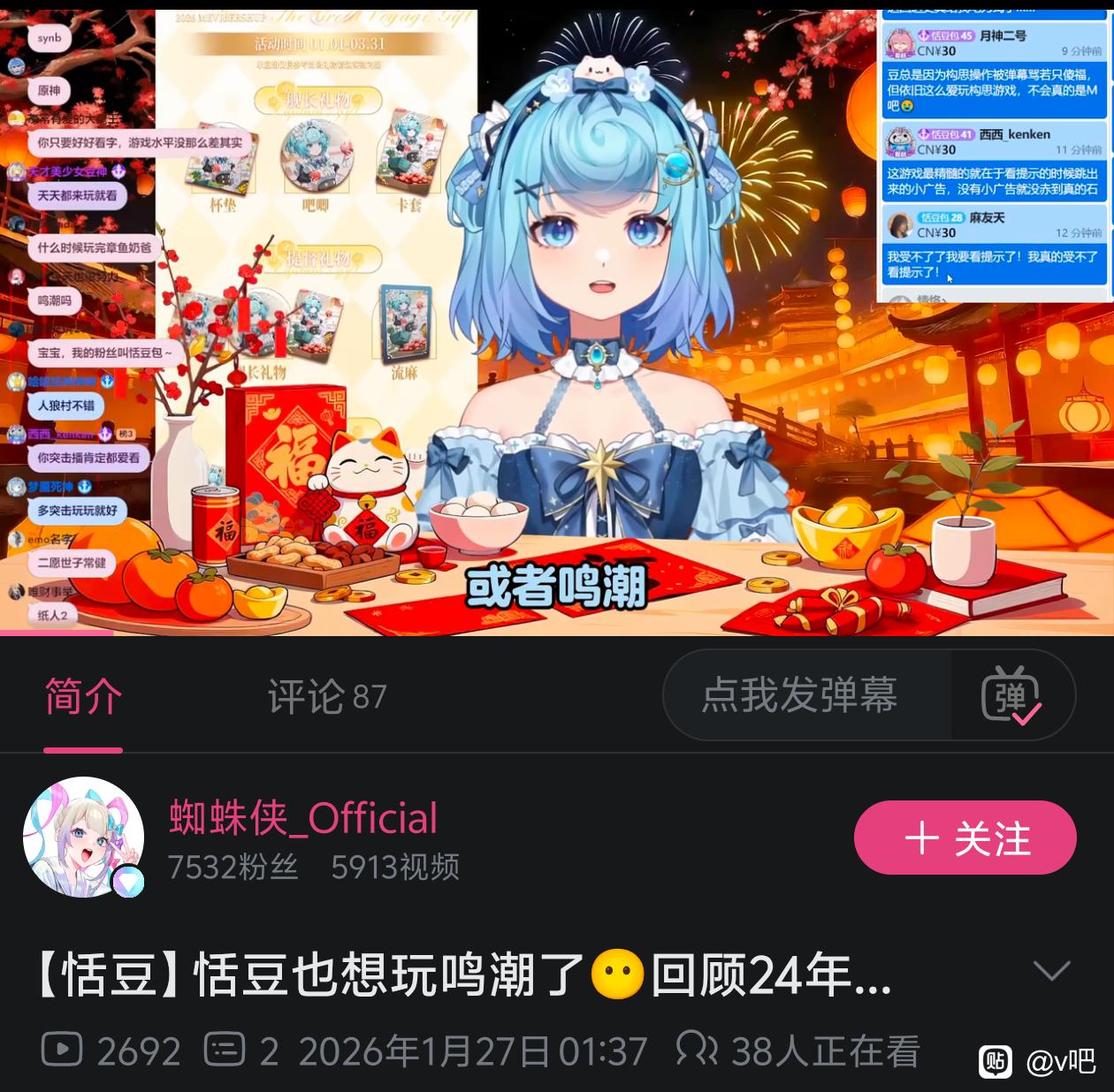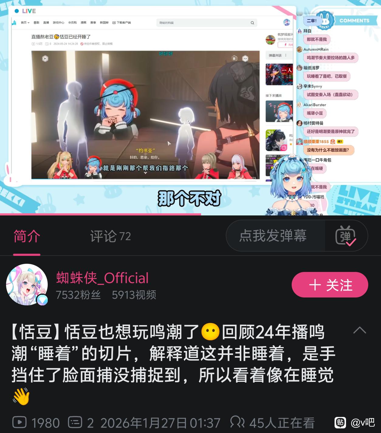 v吧 其实恬豆早在24年就在玩鸣潮了😋tid:104337338082026/01/27 03:45:26122518 20 0楼主:虛虚最后回复:一线天之鸩2026/01/27 22:21:271楼pid:1531337614802026/01/27 03:45:26虛虚 楼主 7级 可惜豆姨年纪大了🧓🏻,玩不了你们这些年轻人的游戏咯😴2楼pid:1531337624602026/01/27 03:46:45虛虚 楼主 7级 当时烂玩鸣潮公式,还被冲了一段3楼pid:1531337642482026/01/27 03:49:14虛虚 楼主 7级 难道真的要让过去的那座山峰,成为人生的制高点吗?4楼3条pid:1531337676932026/01/27 03:53:50虛虚 楼主 7级 难道真的要让过去那座山峰,成为人生的制高点吗?Tymobeta l梦觉12级 难绷,原来在部分wc眼里,万舰靠的是一己之力。二子买粉买舰、豪华舰礼、华丽的3d皮套和生日会台本,反而是“乱搞”阻挠豆神登基tutu3i8级 回复 l梦觉 :现在没有vspo了 感觉丸子直播确实没活了 之前四人团播我还期期都看来一线天之鸩9级 不对啊,舰长涨价是发生在生日会之后啊,恬豆万舰了就绝断了后辈万舰的路5楼1条pid:1531337690802026/01/27 03:55:49虛虚 楼主 7级 你也不甘心是吗?陈恬豆💩bajmao 蓝了12级 又开蹭了6楼pid:1531337804782026/01/27 04:10:48fdfg230M1L1311级 豆豆想要流量,豆豆想要好多好多的米7楼pid:1531351810222026/01/27 15:18:14天才少年烨烨子王1级 我能理解,可能最近睡眠质量不太好8楼pid:1531351921862026/01/27 15:22:13可爱的飞机大哥10级 9楼pid:1531352286432026/01/27 15:35:14蕾米的分身Linkaa1级 4个人直播鸣潮,这怎么玩10楼pid:1531352973402026/01/27 15:59:43洛白宴1级 张子是战国时期的老V了,整不来年轻人这套很正常