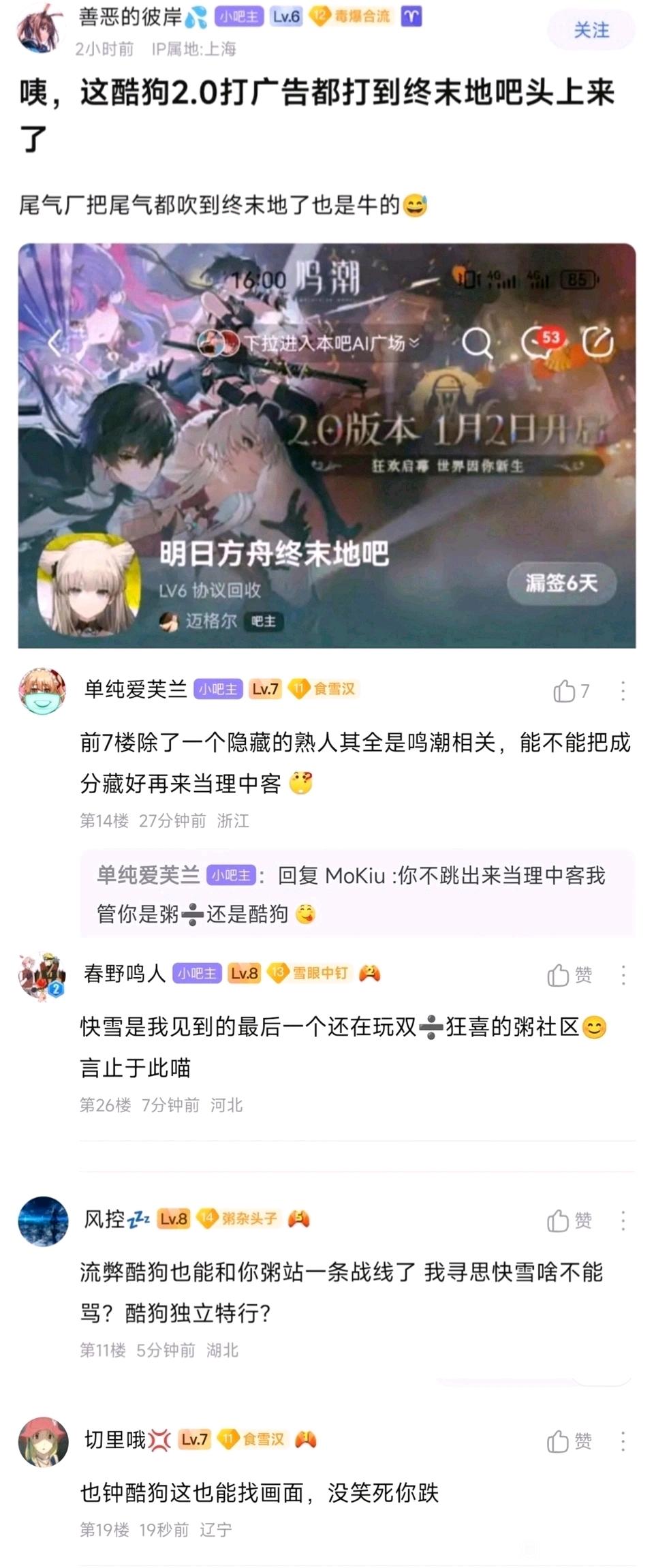 其实OP也是一样的心理,战双之前算崩三的rbq,跟原铁一根毛比不上,社区也是被op殖民的彻彻底底,你告诉我这种路边厂商的新游反而骑在了技术力的象征-原神的头上?为了消除这种落差感,只能搞其他方面的赢学,比如流水,比如周边,比如奖项,不是学长喜欢聊流水,而是只能聊这种场外的东西。