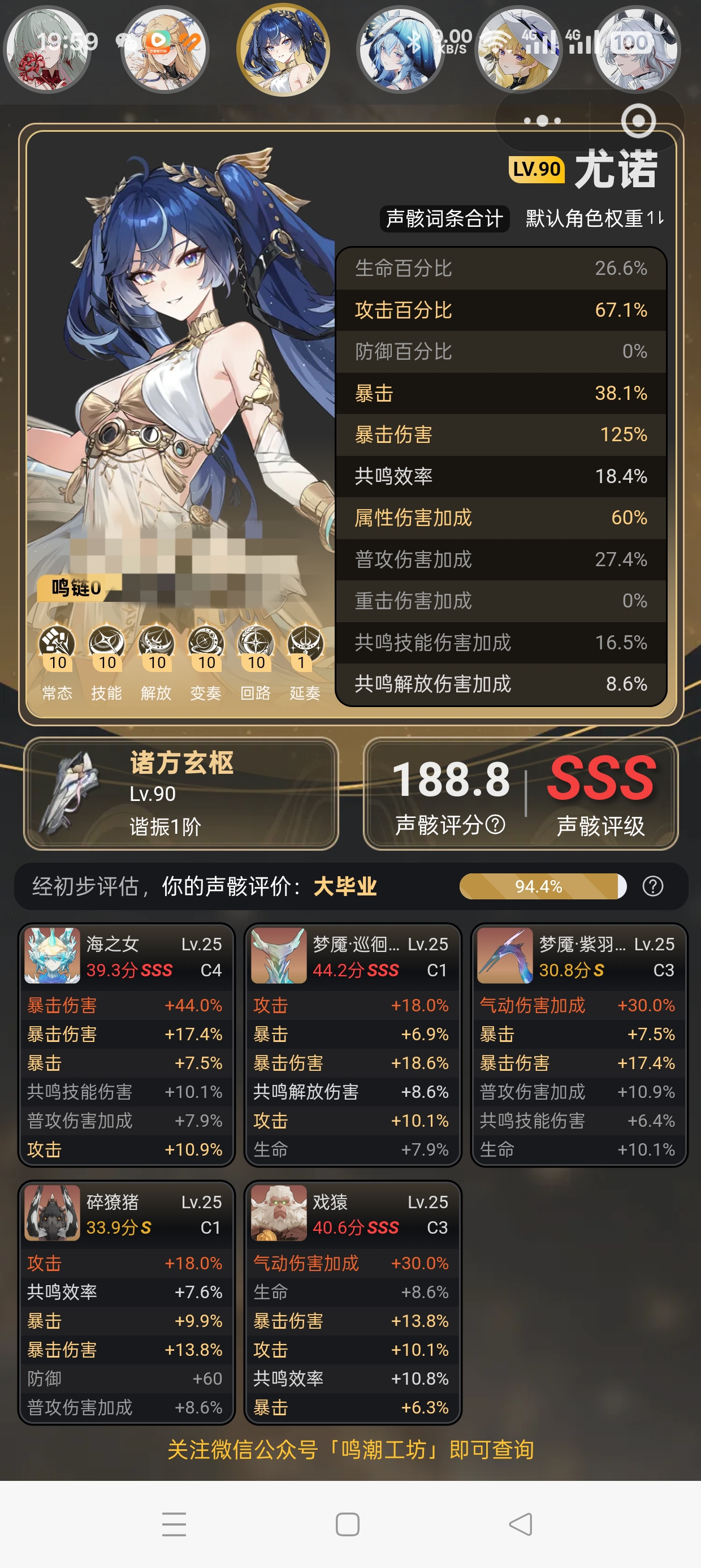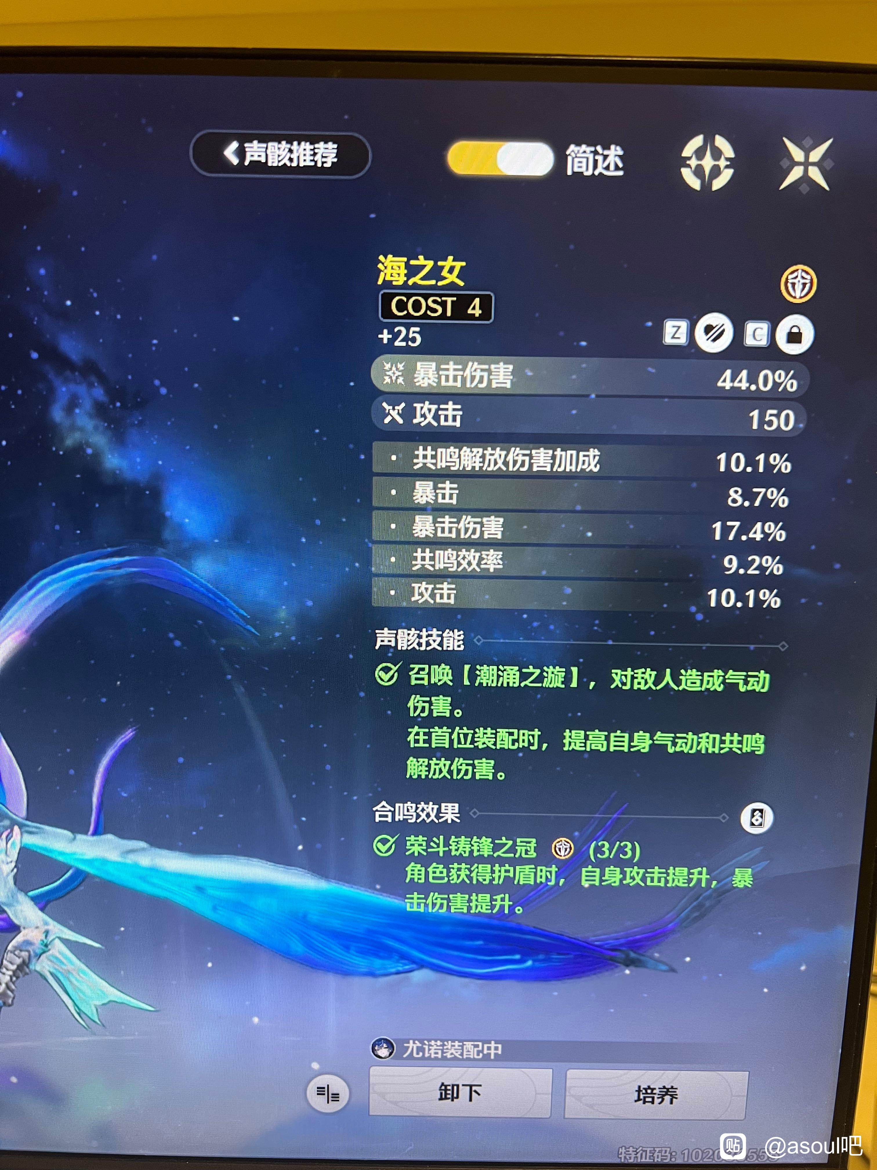不过重点还是完整配队,声骸只需要确保双暴、然后追求大攻击就行,适当随缘几个共鸣效率词条