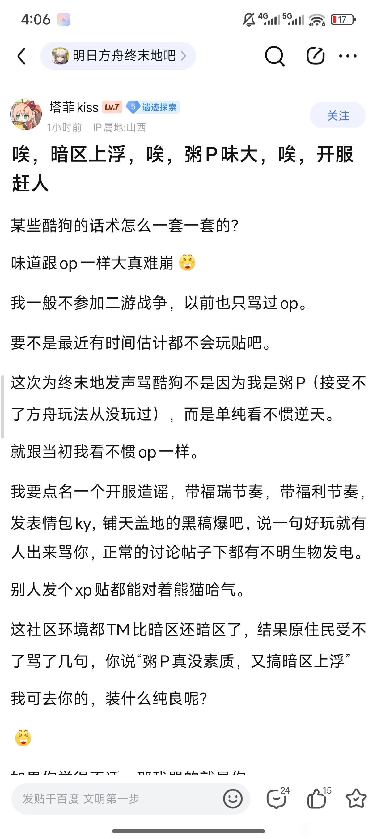 原神内鬼吧 这下知道崩铁鸣潮到底谁先动的手了tid:104398692402026/01/29 02:51:21101229 8 0楼主:定冻基最后回复:贴吧用户_GSyZ2Ne2026/01/29 11:42:241楼pid:1531403485252026/01/29 02:51:21定冻基 楼主 5级 26个评论的时候就有38赞,你有脸说别人搞坏你社区吗?你社区自己的土壤就是烂的,怪不得别人2楼1条pid:1531403840892026/01/29 03:30:2123345ckd679斯旺站外面1级 轨男是这样的nev4com3级 开会3楼pid:1531404176192026/01/29 04:13:22从入门到入门K1级 还得是粥➗阴湿 靠权限禁言完开始输出 大半夜偷偷炫鬼图孝压抑 老牌劲旅4楼pid:1531406441782026/01/29 08:09:29383gp默叹丶笑苍生7级 大佐自带点赞团5楼pid:1531406909622026/01/29 08:32:09定冻基 楼主 5级 米业中全万敌了6楼pid:1531407769962026/01/29 09:05:28逐梦457✨逐梦✨11级 和绝种一样,有事没事就喜欢刷注意防潮,结果评论区就没看到几个酷狗,全是搁那儿共振的,游戏和社区有问题是为什么,简单,酷狗干的!7楼pid:1531408487032026/01/29 09:32:32看见我有三天好运气3级 无所谓,柜子会岁成kg自己过来找骂,它们只是正当防卫8楼pid:1531408612952026/01/29 09:36:56孙笑川12309不羨仙1003210级 注意防潮9楼pid:1531409609402026/01/29 10:11:50水慕沐7级 一定是kg过来反串的10楼pid:1531410715282026/01/29 10:50:38凡尘叶秋扶老奶奶闯红灯fan6级 当然是kg开小号干的,我们冰清玉洁的米游玩家才不会干这种事11楼pid:1531412287022026/01/29 11:42:24冲浪高手2131级 那能一样嘛,kg反串的
