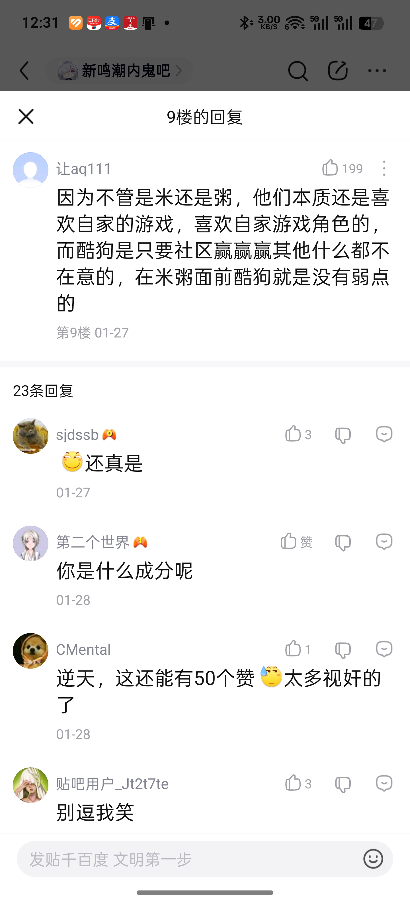 原神内鬼吧 公公吧和新鸣最近都在洗地我们纯良米友是何故tid:104415688162026/01/29 16:21:318534 4 0楼主:TheGhostWin最后回复:土豆小炒姜丝灯刀百年好合🌸2026/01/30 13:24:241楼pid:1531420427822026/01/29 16:21:31TheGhostWin 楼主 10级 2楼pid:1531420432772026/01/29 16:21:41TheGhostWin 楼主 10级 @神寂启示鸣神 @我不是长离厨3楼pid:1531429822392026/01/29 21:38:28路过0此地无银新鸣新❤️反鸣10级 那咋了,拟态说了只要反鸣怎样都行4楼pid:1531430117842026/01/29 21:48:11我的sjzjj今州城的嘎子9级 那咋了,拟态说了只要反鸣怎样都行5楼pid:1531430942252026/01/29 22:14:45star凉笙贴吧用户_GWEAe3M10级 那咋了,拟态说了只要反鸣怎样都行6楼pid:1531431634242026/01/29 22:37:19smile爱上大声青山侧音10级 这真是新鸣的🐶说出来的话啊,夸张7楼pid:1531437130082026/01/30 01:28:57wuyaxungod刻晴马超玩家11级 那咋了,拟态说了只要反鸣怎样都行8楼pid:1531439077632026/01/30 03:59:33見人説屁话散兵配中妮露10级 那咋了,拟态说了只要反鸣怎样都行9楼pid:1531451650842026/01/30 13:24:24土豆小炒姜丝折耳根凉拌鱼腥草1级 那咋了,拟态说了只要反鸣怎样都行
