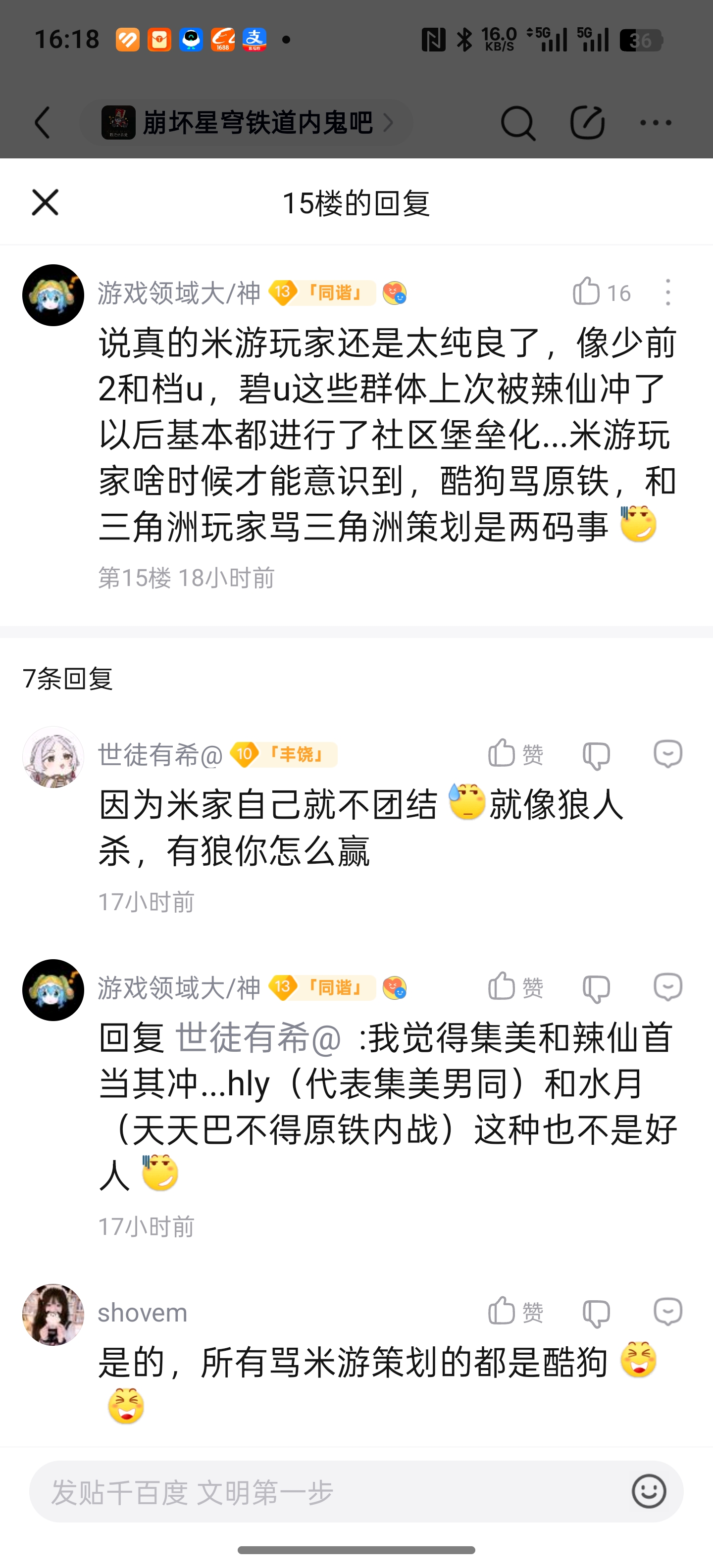 起始页原神内鬼吧 公公吧和新鸣最近都在洗地我们纯良米友是何故tid:104415688162026/01/29 16:21:318534 4 0楼主:TheGhostWin最后回复:土豆小炒姜丝灯刀百年好合🌸2026/01/30 13:24:241楼pid:1531420427822026/01/29 16:21:31TheGhostWin 楼主 10级 2楼pid:1531420432772026/01/29 16:21:41TheGhostWin 楼主 10级 @神寂启示鸣神 @我不是长离厨3楼pid:1531429822392026/01/29 21:38:28路过0此地无银新鸣新❤️反鸣10级 那咋了,拟态说了只要反鸣怎样都行4楼pid:1531430117842026/01/29 21:48:11我的sjzjj今州城的嘎子9级 那咋了,拟态说了只要反鸣怎样都行5楼pid:1531430942252026/01/29 22:14:45star凉笙贴吧用户_GWEAe3M10级 那咋了,拟态说了只要反鸣怎样都行6楼pid:1531431634242026/01/29 22:37:19smile爱上大声青山侧音10级 这真是新鸣的🐶说出来的话啊,夸张7楼pid:1531437130082026/01/30 01:28:57wuyaxungod刻晴马超玩家11级 那咋了,拟态说了只要反鸣怎样都行8楼pid:1531439077632026/01/30 03:59:33見人説屁话散兵配中妮露10级 那咋了,拟态说了只要反鸣怎样都行9楼pid:1531451650842026/01/30 13:24:24土豆小炒姜丝折耳根凉拌鱼腥草1级 那咋了,拟态说了只要反鸣怎样都行